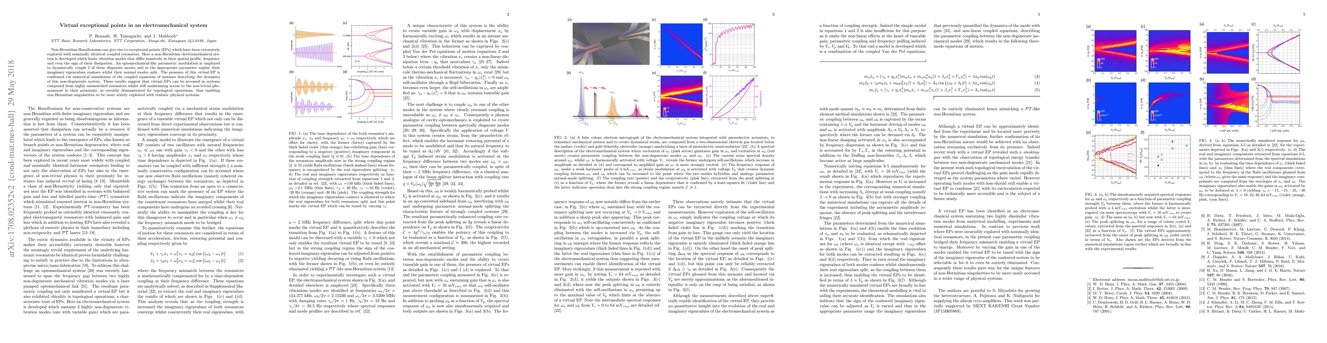 Non-Hermitian Hamiltonians can give rise to exceptional points (EPs) which have been extensively explored with nominally identical coupled resonators. Here a non-Hermitian electromechanical system is developed which hosts vibration modes that differ massively in their spatial profile, frequency and even the sign of their dissipation. An optomechanical-like parametric modulation is employed to dynamically couple 2 of these disparate modes and in the appropriate parameter regime their imaginary eigenvalues coalesce whilst their normal modes split. The presence of this virtual EP is confirmed via numerical simulations of the coupled equations of motions describing the dynamics of this non-degenerate system. These results suggest that virtual EPs can be accessed in systems composed from highly mismatched resonators whilst still maintaining access to the non-trivial phenomenon in their proximity, as recently demonstrated for topological operations, thus enabling non-Hermitian singularities to be more widely exploited with realistic physical systems.