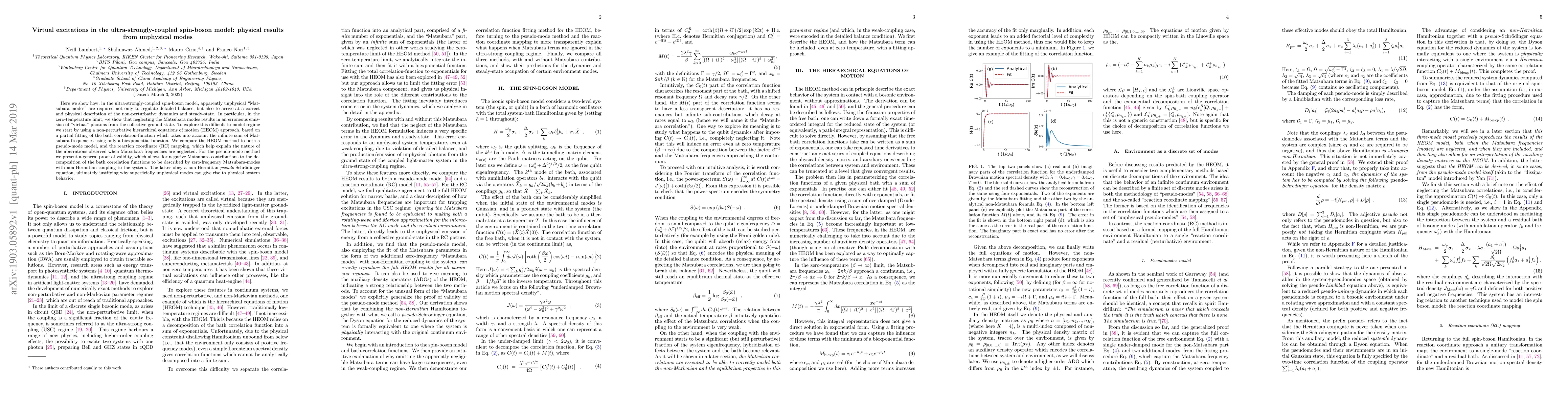 Here we show how, in the ultra-strongly-coupled spin-boson model, apparently unphysical "Matsubara modes" are required not only to regulate detailed balance, but also to arrive at a correct and physical description of the non-perturbative dynamics and steady-state. In particular, in the zero-temperature limit, we show that neglecting the Matsubara modes results in an erroneous emission of virtual photons from the collective ground state. To explore this difficult-to-model regime we start by using a non-perturbative hierarchical equations of motion (HEOM) approach, based on a partial fitting of the bath correlation-function which takes into account the infinite sum of Matsubara frequencies using only a biexponential function. We compare the HEOM method to both a pseudo-mode model, and the reaction coordinate (RC) mapping, which help explain the nature of the aberrations observed when Matsubara frequencies are neglected. For the pseudo-mode method we present a general proof of validity, which allows for negative Matsubara-contributions to the decomposition of the bath correlation functions to be described by zero-frequency Matsubara-modes with non-Hermitian coupling to the system. The latter obey a non-Hermitian pseudo-Schr\"odinger equation, ultimately justifying why superficially unphysical modes can give rise to physical system behavior.