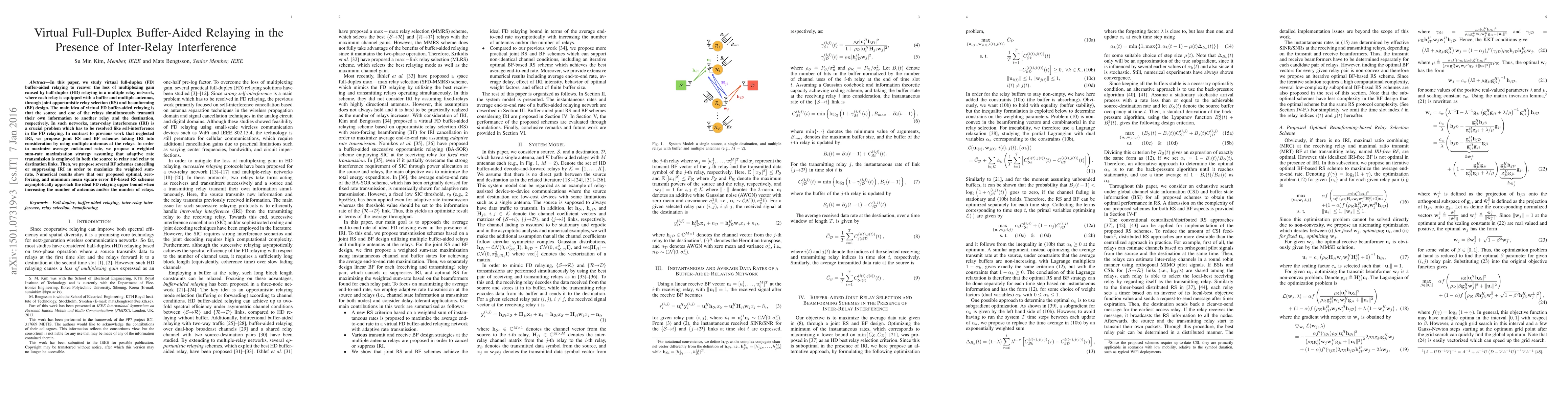 This paper explores virtual full-duplex buffer-aided relaying to mitigate the loss of multiplexing gain from half-duplex relaying in multi-relay networks. It proposes joint relay selection and beamforming schemes to address inter-relay interference, achieving optimal, zero forcing, and minimum mean square error performance, which approach the ideal full-duplex relaying upper bound with more antennas and relays.