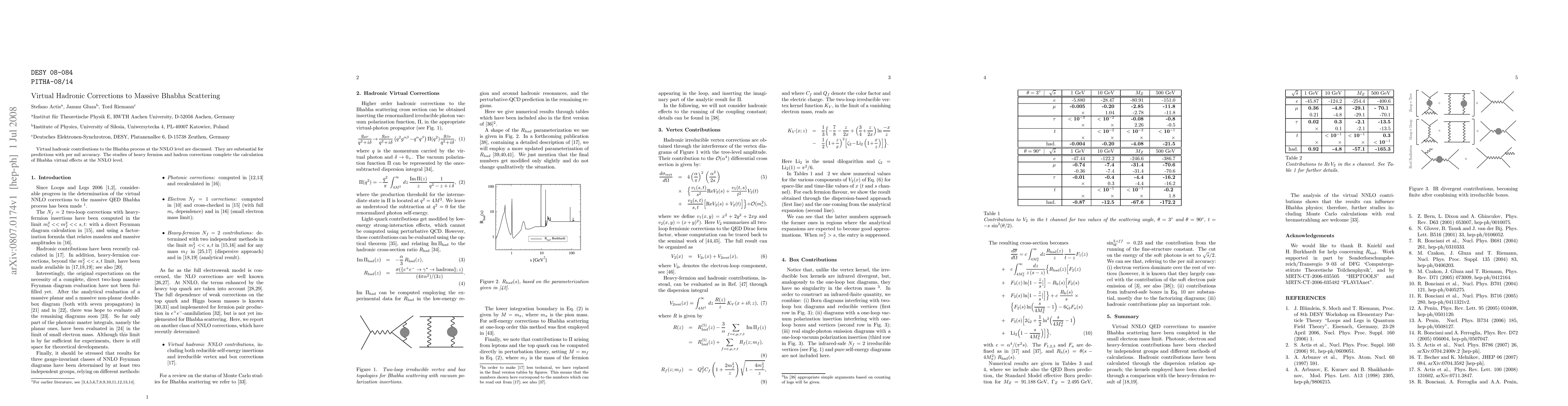 The research calculates virtual NNLO QED corrections to massive Bhabha scattering using the small electron mass limit. It employs independent group checks and various calculation methods for photonic, electron, and heavy-fermion contributions. Hadronic contributions are calculated through the dispersion relation approach, with kernel elements checked against heavy-fermion results.