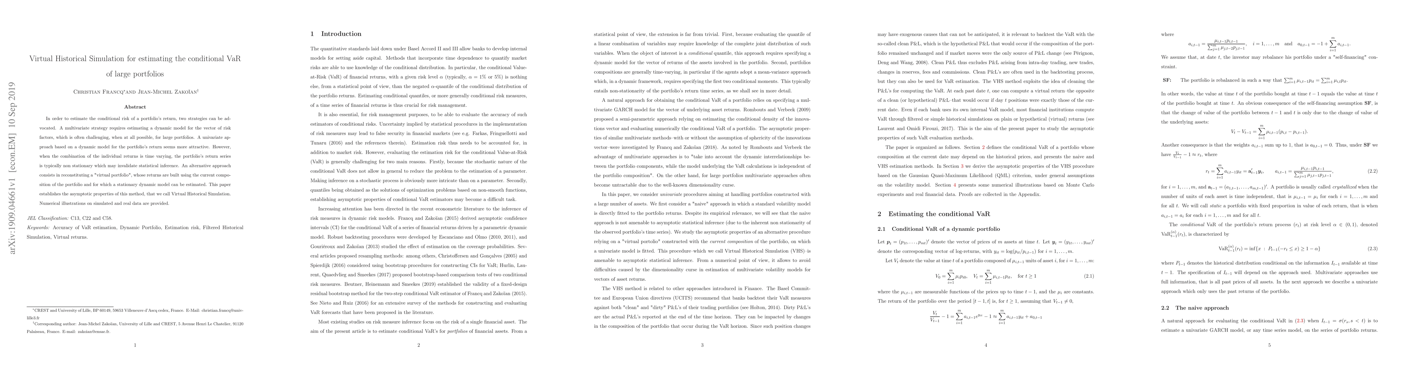 In order to estimate the conditional risk of a portfolio's return, two strategies can be advocated. A multivariate strategy requires estimating a dynamic model for the vector of risk factors, which is often challenging, when at all possible, for large portfolios. A univariate approach based on a dynamic model for the portfolio's return seems more attractive. However, when the combination of the individual returns is time varying, the portfolio's return series is typically non stationary which may invalidate statistical inference. An alternative approach consists in reconstituting a "virtual portfolio", whose returns are built using the current composition of the portfolio and for which a stationary dynamic model can be estimated. This paper establishes the asymptotic properties of this method, that we call Virtual Historical Simulation. Numerical illustrations on simulated and real data are provided.