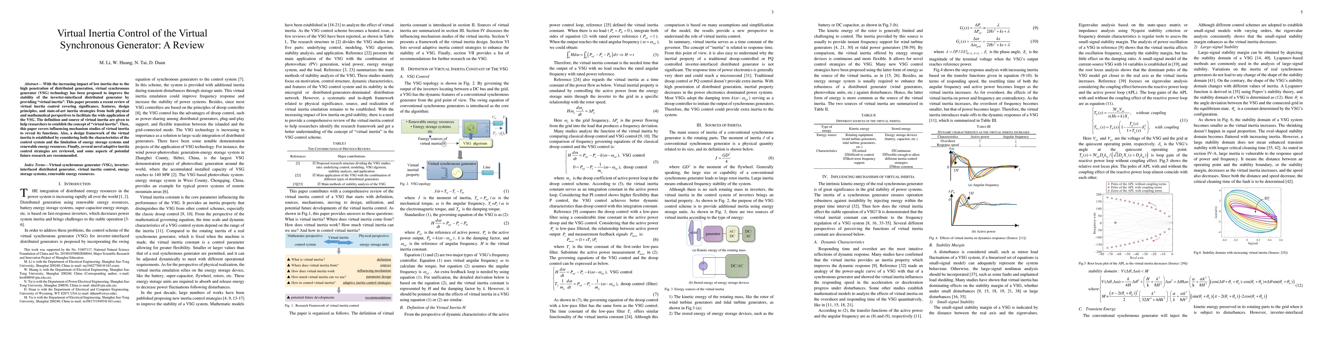With the increasing impact of low inertia due to the high penetration of distributed generation, virtual synchronous generator (VSG) technology has been proposed to improve the stability of the inverter-interfaced distributed generator by providing "virtual inertia". This paper presents a recent review of virtual inertia control covering significance, features, design principles, and state-of-art inertia strategies from both physical and mathematical perspectives to facilitate the wide application of the VSG. The definition and source of virtual inertia are given to help researchers to establish the concept of "virtual inertia". Then, this paper covers influencing mechanism studies of virtual inertia to reveal its functions. Also, a design framework of the virtual inertia is established by considering both the characteristics of the control system and the limitation of energy storage systems and renewable energy resources. Finally, several novel adaptive inertia control strategies are reviewed, and some aspects of potential future research are recommended.