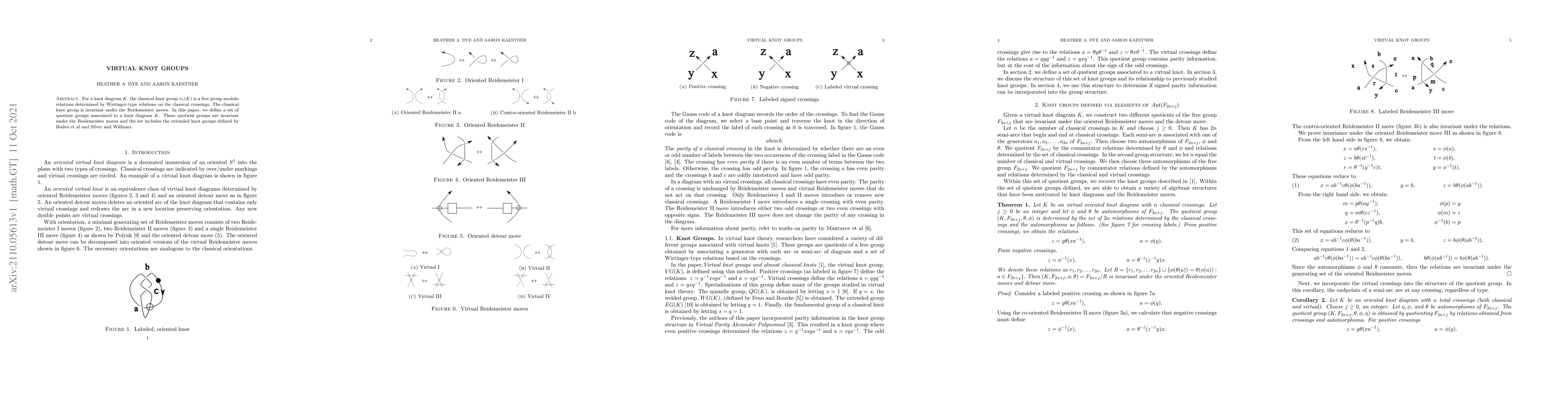 For a knot diagram $K$, the classical knot group $\pi_1(K)$ is a free group modulo relations determined by Wirtinger-type relations on the classical crossings. The classical knot group is invariant under the Reidemeister moves. In this paper, we define a set of quotient groups associated to a knot diagram $K$. These quotient groups are invariant under the Reidemeister moves and the set includes the extended knot groups defined by Boden et al and Silver and Williams.