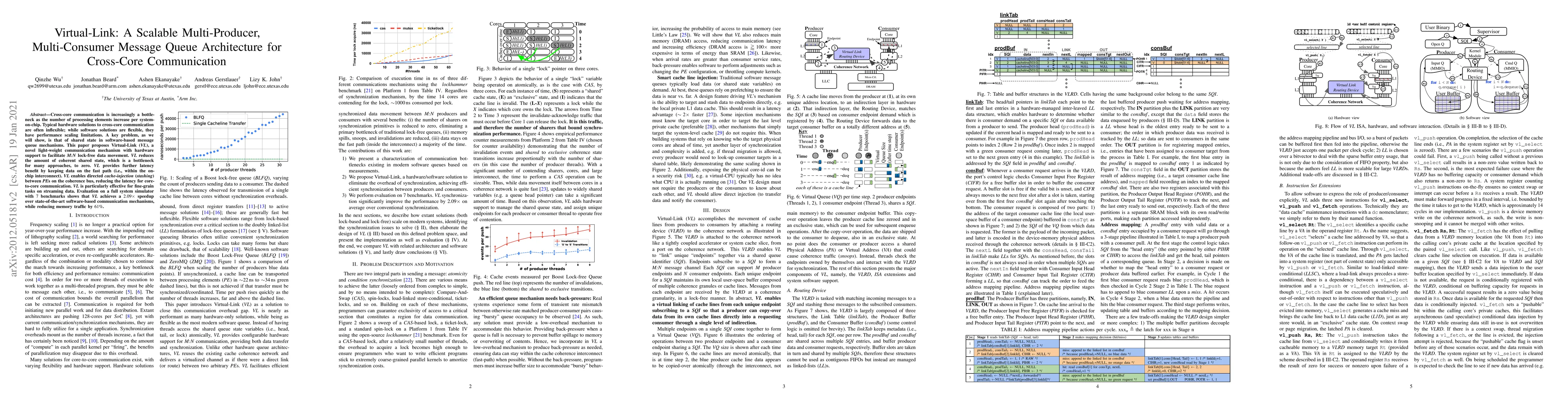 Virtual-Link reduces shared state in cross-core communication to zero, achieving a 2.09x speedup over software-based mechanisms while reducing memory traffic by 61%.