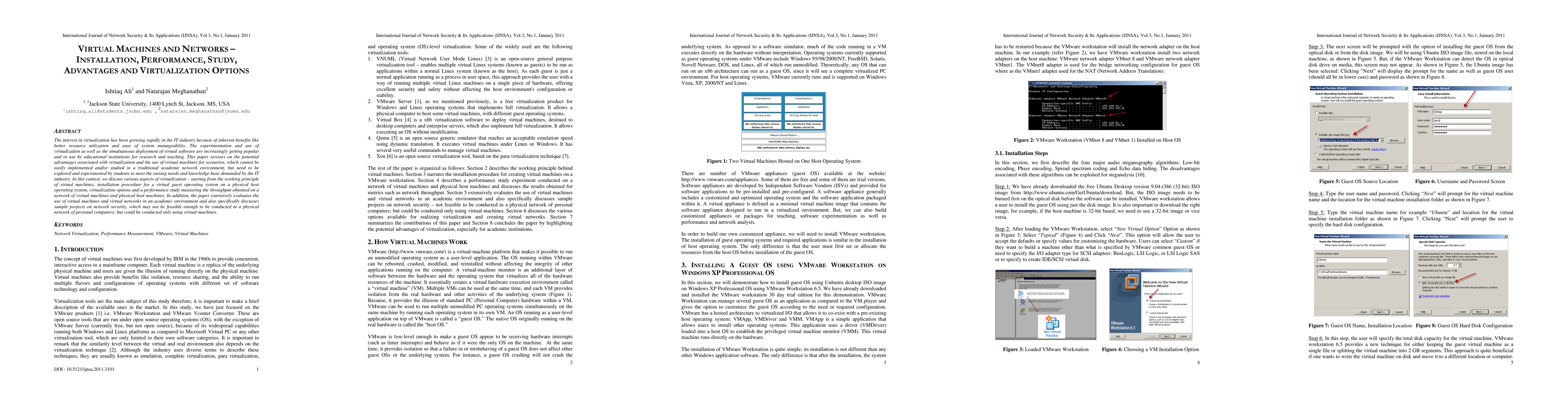 The interest in virtualization has been growing rapidly in the IT industry because of inherent benefits like better resource utilization and ease of system manageability. The experimentation and use of virtualization as well as the simultaneous deployment of virtual software are increasingly getting popular and in use by educational institutions for research and teaching. This paper stresses on the potential advantages associated with virtualization and the use of virtual machines for scenarios, which cannot be easily implemented and/or studied in a traditional academic network environment, but need to be explored and experimented by students to meet the raising needs and knowledge-base demanded by the IT industry. In this context, we discuss various aspects of virtualization - starting from the working principle of virtual machines, installation procedure for a virtual guest operating system on a physical host operating system, virtualization options and a performance study measuring the throughput obtained on a network of virtual machines and physical host machines. In addition, the paper extensively evaluates the use of virtual machines and virtual networks in an academic environment and also specifically discusses sample projects on network security, which may not be feasible enough to be conducted in a physical network of personal computers; but could be conducted only using virtual machines.