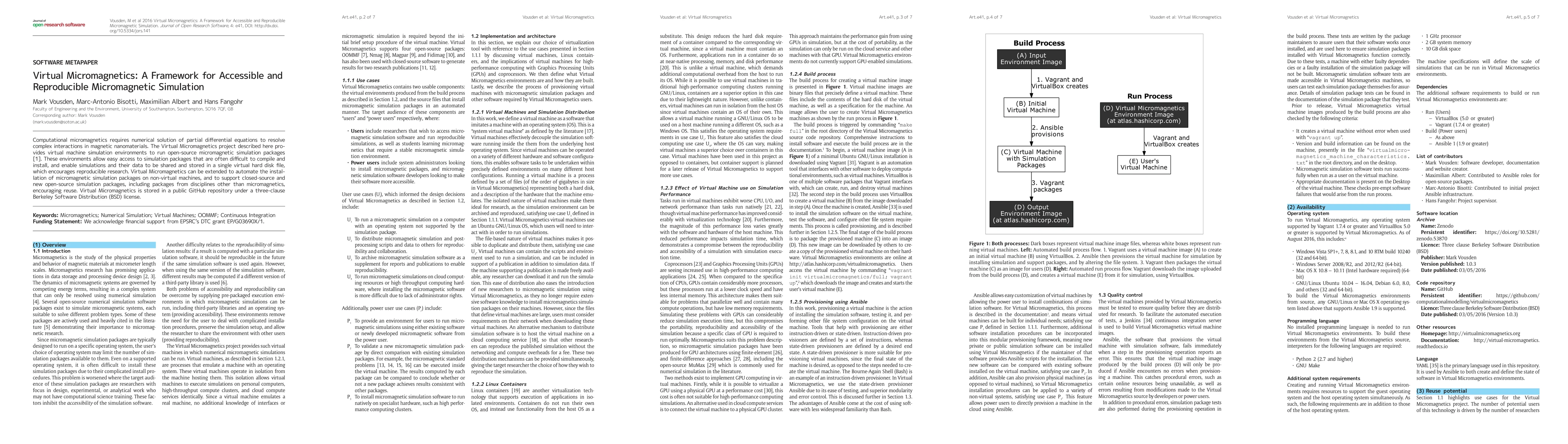 The Virtual Micromagnetics project offers pre-configured virtual machine environments for running open-source micromagnetic simulation packages, simplifying access and installation, and promoting reproducible research through shared virtual hard disk files. It is hosted on GitHub under a BSD license and can be extended to support other simulation packages.