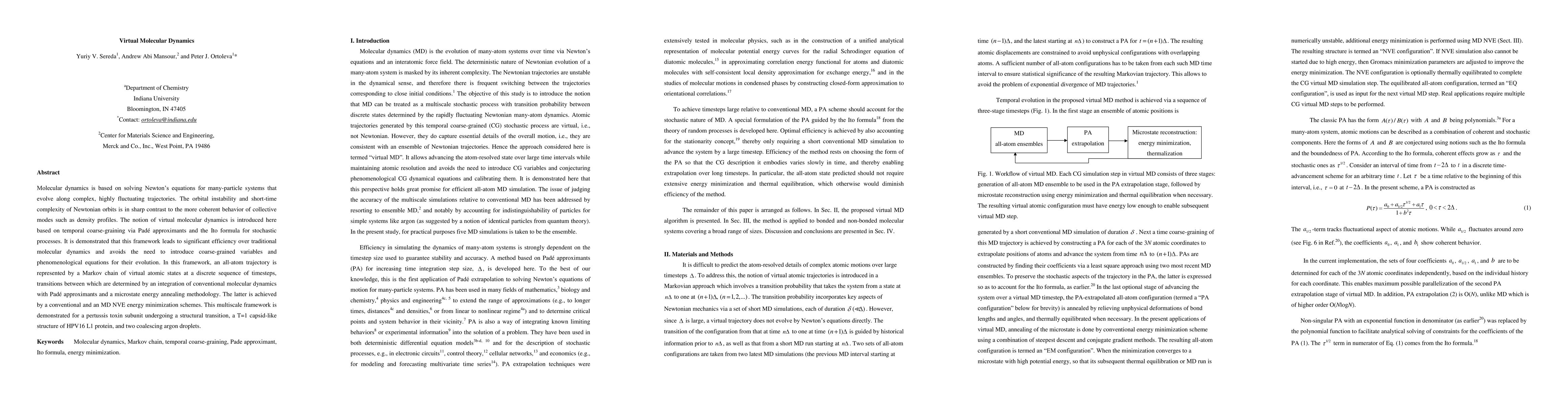 The research introduces virtual molecular dynamics (VMD) based on temporal coarse-graining via Pade approximants and the Ito formula for stochastic processes, demonstrating its efficiency over traditional molecular dynamics without requiring coarse-grained variables or phenomenological equations.
