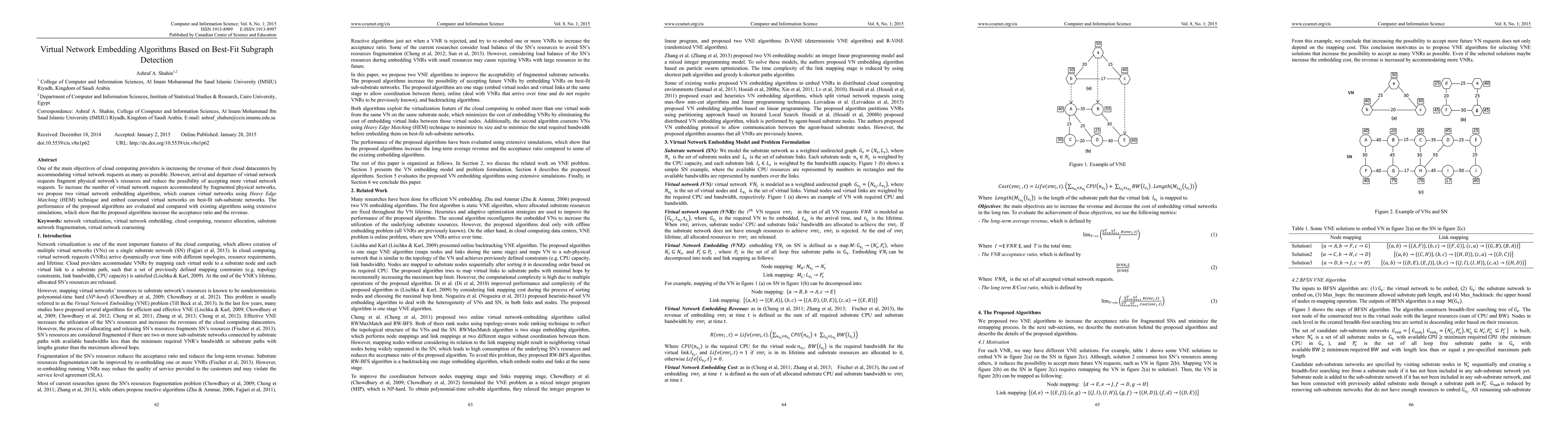One of the main objectives of cloud computing providers is increasing the revenue of their cloud datacenters by accommodating virtual network requests as many as possible. However, arrival and departure of virtual network requests fragment physical network's resources and reduce the possibility of accepting more virtual network requests. To increase the number of virtual network requests accommodated by fragmented physical networks, we propose two virtual network embedding algorithms, which coarsen virtual networks using Heavy Edge Matching (HEM) technique and embed coarsened virtual networks on best-fit sub-substrate networks. The performance of the proposed algorithms are evaluated and compared with existing algorithms using extensive simulations, which show that the proposed algorithms increase the acceptance ratio and the revenue.