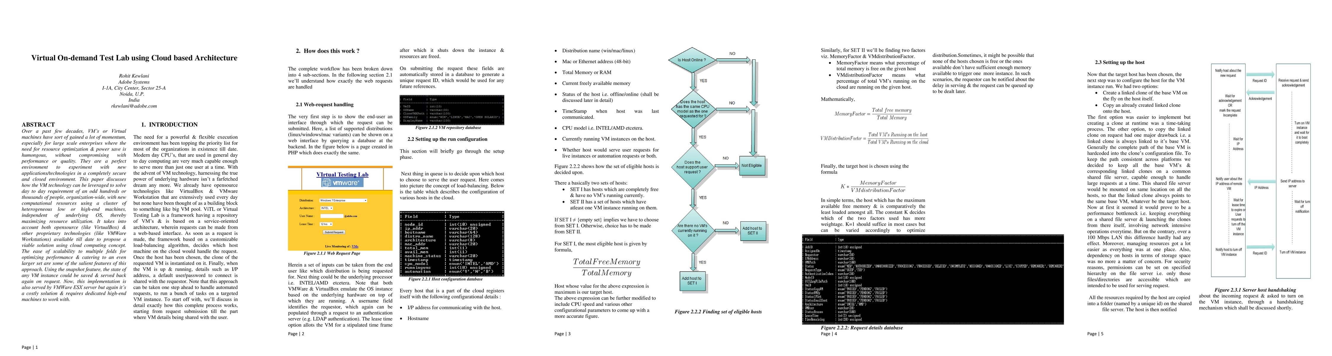 This paper explores leveraging VM technology and cloud computing to create a scalable, on-demand test lab for organizations, optimizing resource utilization and performance across heterogeneous machines, while addressing the high costs of proprietary solutions like VMWare ESX. The proposed solution offers scalability and flexibility using open-source and proprietary VM technologies.