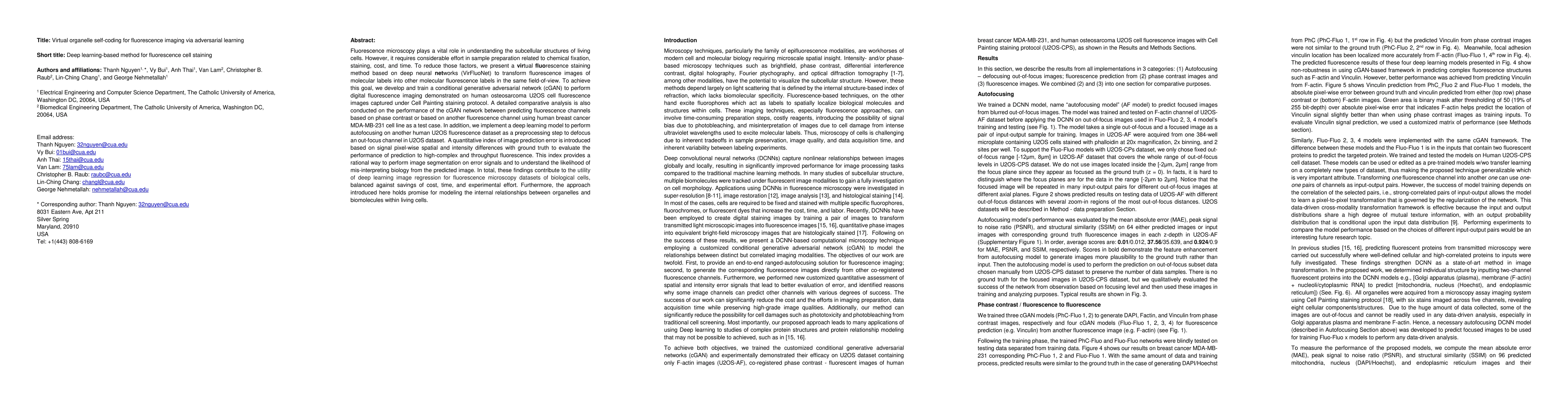Researchers developed a virtual fluorescence staining method using deep neural networks to reduce sample preparation time and cost in fluorescence microscopy, enabling accurate predictions of fluorescence images.