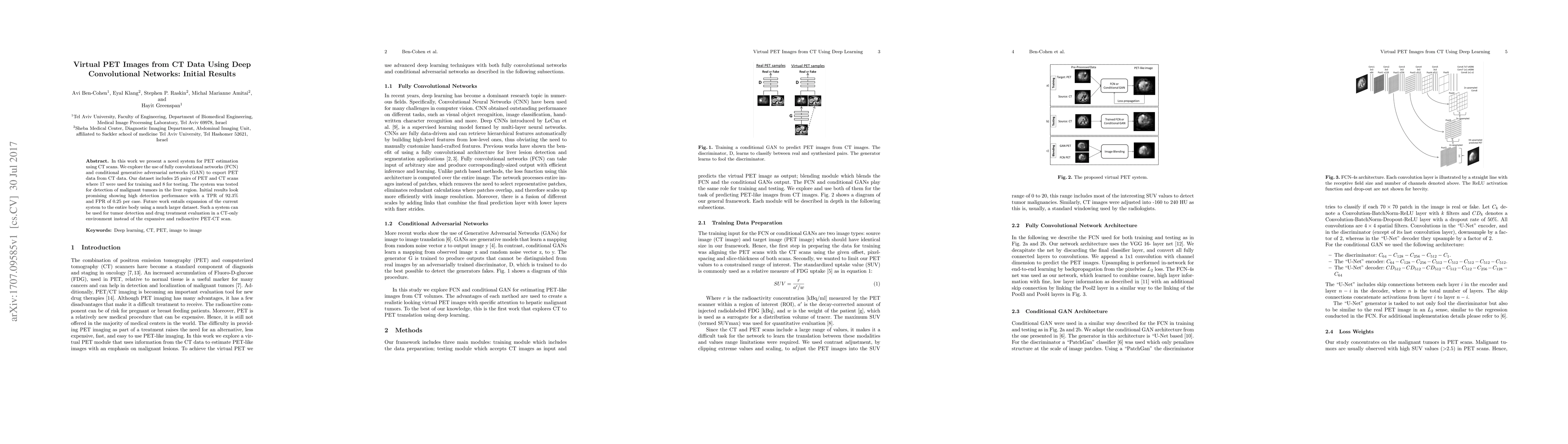 This research introduces a system using deep convolutional networks to estimate PET images from CT scans, showing promising initial results with high detection performance for malignant tumors in the liver. Future plans include expanding the system for whole-body scans with a larger dataset.