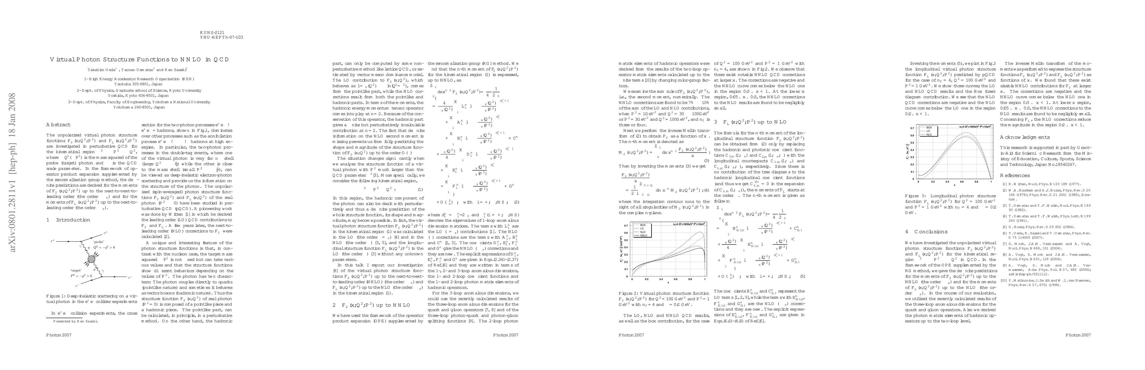 This paper investigates unpolarized virtual photon structure functions in perturbative QCD, deriving predictions up to next-to-next-to-leading order for $F_2^\gamma$ and next-to-leading order for $F_L^\gamma$ using operator product expansion and renormalization group methods.