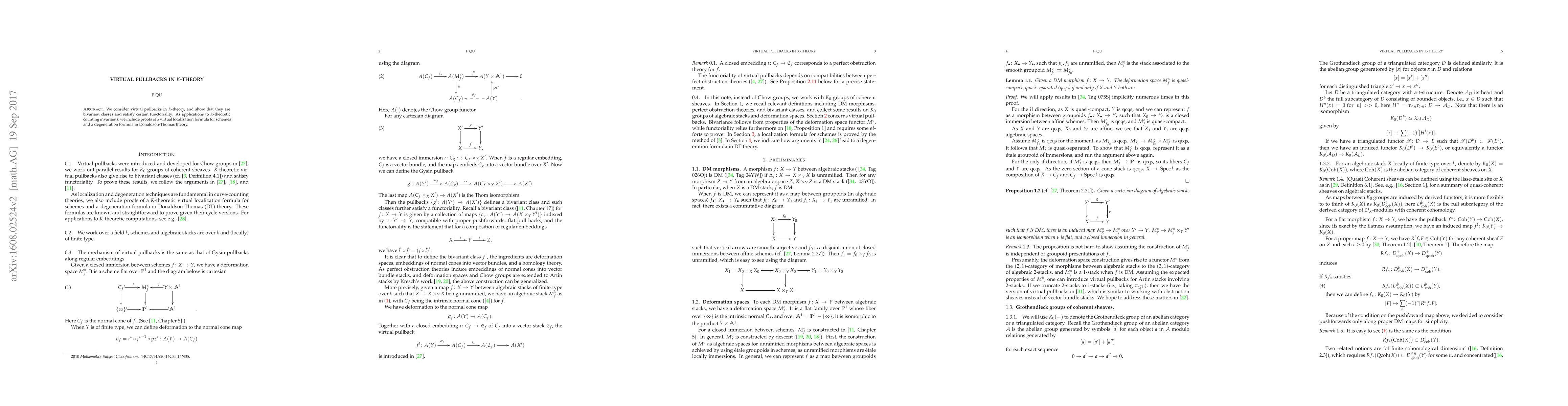 We consider virtual pullbacks in $K$-theory, and show that they are bivariant classes and satisfy certain functoriality. As applications to $K$-theoretic counting invariants, we include proofs of a virtual localization formula for schemes and a degeneration formula in Donaldson-Thomas theory.