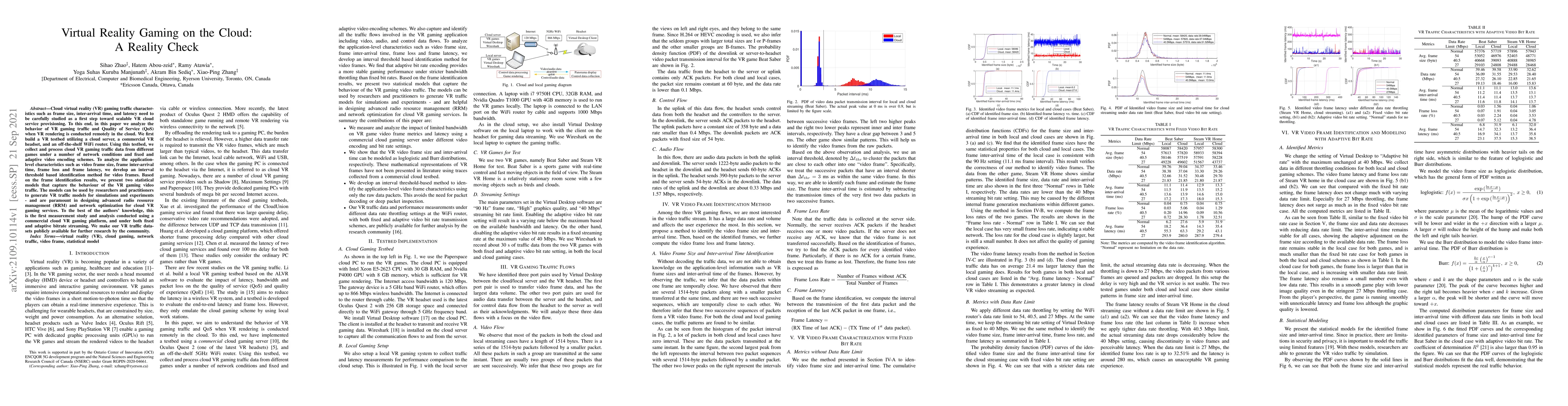 This paper analyzes the traffic characteristics of cloud virtual reality (VR) gaming, focusing on frame size, inter-arrival time, and latency. It develops statistical models to capture VR gaming traffic behavior, which can aid in designing network optimization and radio resource management for cloud VR services. The study makes VR traffic datasets publicly available for further research.