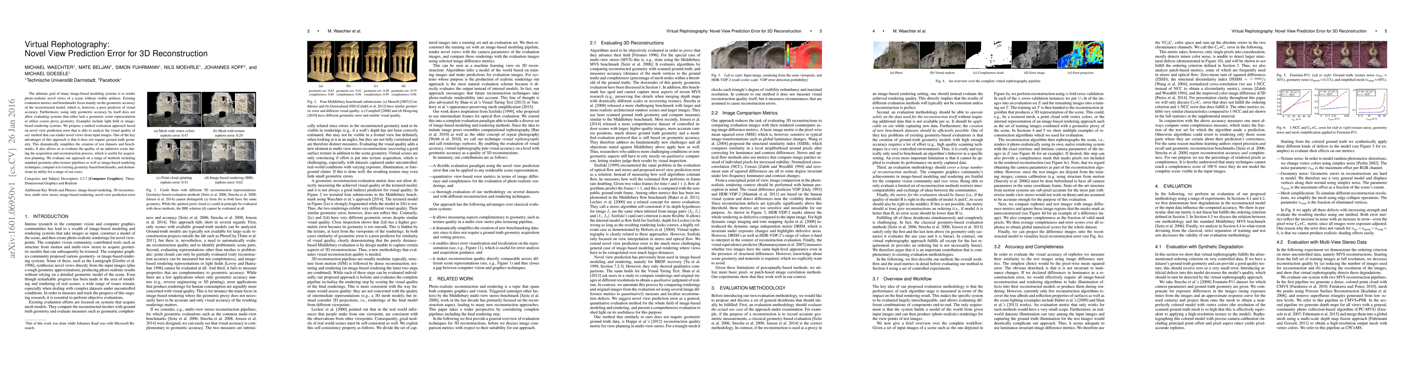 The ultimate goal of many image-based modeling systems is to render photo-realistic novel views of a scene without visible artifacts. Existing evaluation metrics and benchmarks focus mainly on the geometric accuracy of the reconstructed model, which is, however, a poor predictor of visual accuracy. Furthermore, using only geometric accuracy by itself does not allow evaluating systems that either lack a geometric scene representation or utilize coarse proxy geometry. Examples include light field or image-based rendering systems. We propose a unified evaluation approach based on novel view prediction error that is able to analyze the visual quality of any method that can render novel views from input images. One of the key advantages of this approach is that it does not require ground truth geometry. This dramatically simplifies the creation of test datasets and benchmarks. It also allows us to evaluate the quality of an unknown scene during the acquisition and reconstruction process, which is useful for acquisition planning. We evaluate our approach on a range of methods including standard geometry-plus-texture pipelines as well as image-based rendering techniques, compare it to existing geometry-based benchmarks, and demonstrate its utility for a range of use cases.