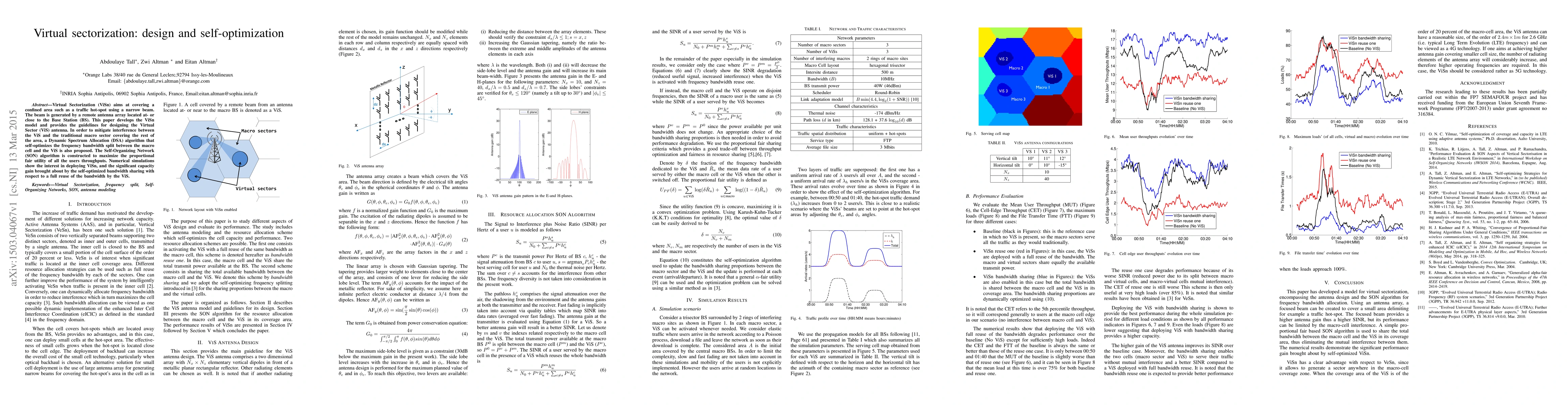 This paper introduces Virtual Sectorization (ViSn), a method using remote antenna arrays to create narrow beams for traffic hot-spots. It proposes a Dynamic Spectrum Allocation (DSA) algorithm for interference mitigation and a Self-Organizing Network (SON) algorithm for maximizing user throughput. Simulation results indicate that ViSn significantly improves capacity with self-optimized bandwidth sharing, outperforming full bandwidth reuse by ViS.