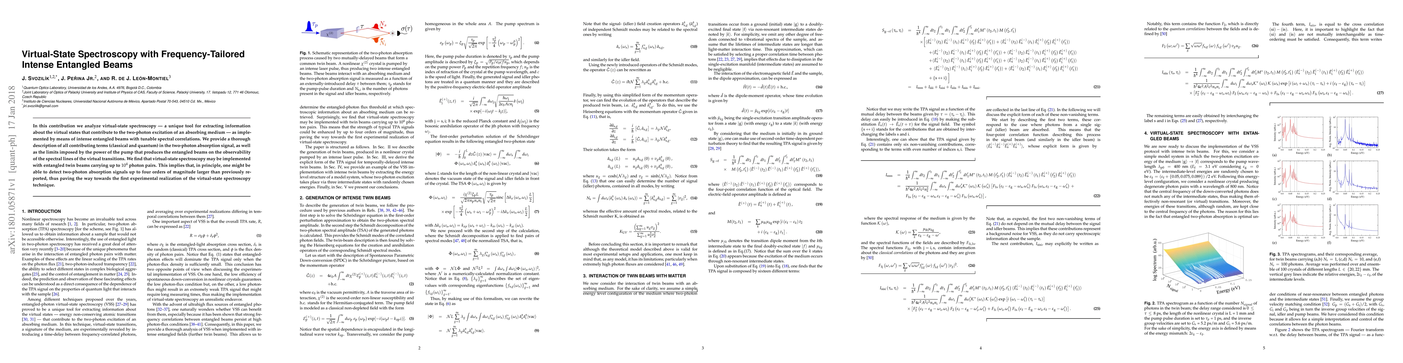 In this contribution we analyze virtual-state spectroscopy --- a unique tool for extracting information about the virtual states that contribute to the two-photon excitation of an absorbing medium --- as implemented by means of intense entangled beams with tunable spectral correlations. We provide a thorough description of all contributing terms (classical and quantum) in the two-photon absorption signal, as well as the limits imposed by the power of the pump that produces the entangled beams on the observability of the spectral lines of the virtual transitions. We find that virtual-state spectroscopy may be implemented with entangled twin beams carrying up to $10^4$ photon pairs. This implies that, in principle, one might be able to detect two-photon absorption signals up to four orders of magnitude larger than previously reported, thus paving the way towards the first experimental realization of the virtual-state spectroscopy technique.