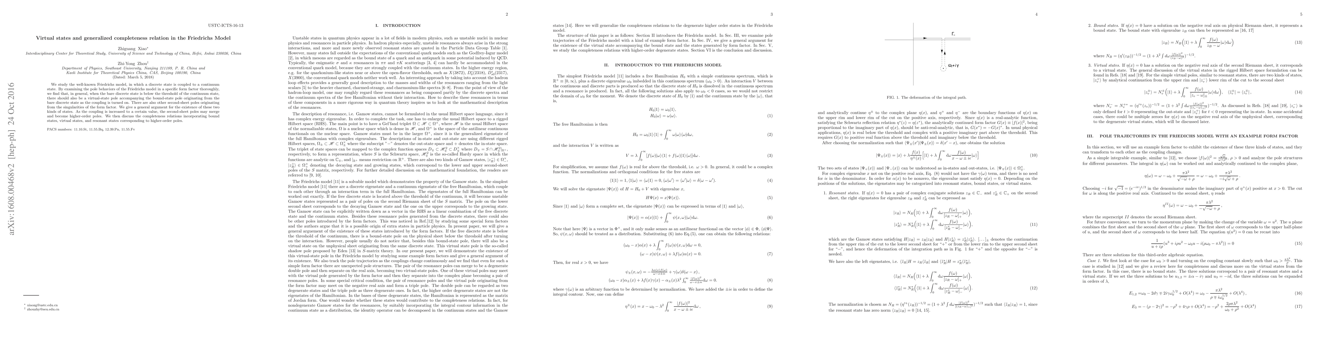 This research paper finds that a virtual state accompanies a bound-state pole in the Friedrichs model when a discrete state is coupled to a continuum state, leading to a new understanding of completeness relations.