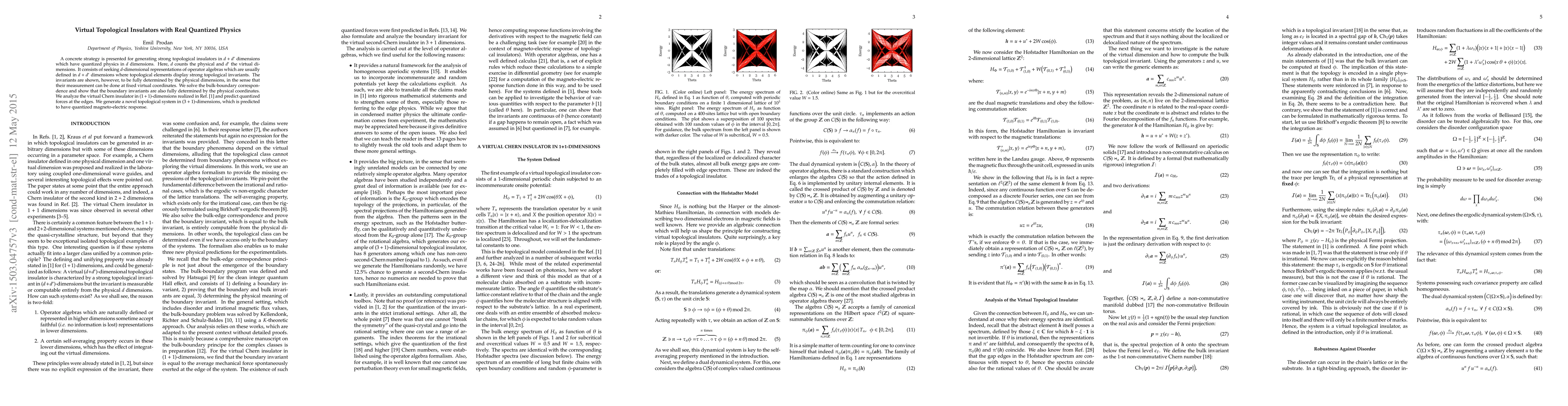 A concrete strategy is presented for generating strong topological insulators in $d+d'$ dimensions which have quantized physics in $d$ dimensions. Here, $d$ counts the physical and $d'$ the virtual dimensions. It consists of seeking $d$-dimensional representations of operator algebras which are usually defined in $d+d'$ dimensions where topological elements display strong topological invariants. The invariants are shown, however, to be fully determined by the physical dimensions, in the sense that their measurement can be done at fixed virtual coordinates. We solve the bulk-boundary correspondence and show that the boundary invariants are also fully determined by the physical coordinates. We analyze the virtual Chern insulator in $(1+1)$-dimensions realized in Ref.~\cite{KrausPRL2012hh} and predict quantized forces at the edges. We generate a novel topological system in $(3+1)$-dimensions, which is predicted to have quantized magneto-electric response.