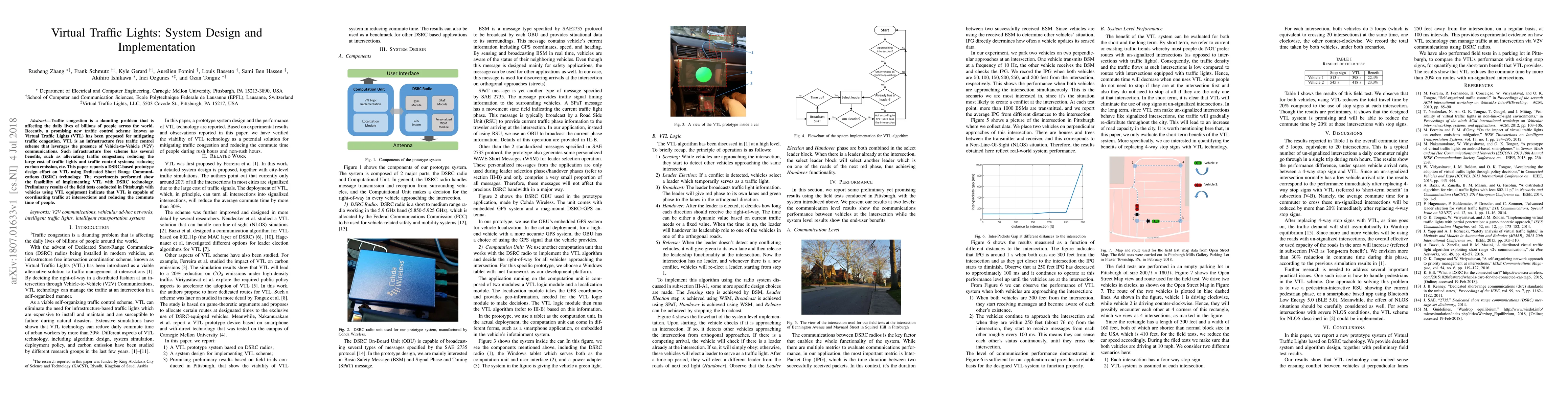 A new traffic control scheme called Virtual Traffic Lights (VTL) uses Vehicle-to-Vehicle communications to mitigate congestion without infrastructure. Field tests in Pittsburgh show that VTL can coordinate traffic at intersections and reduce commute time.