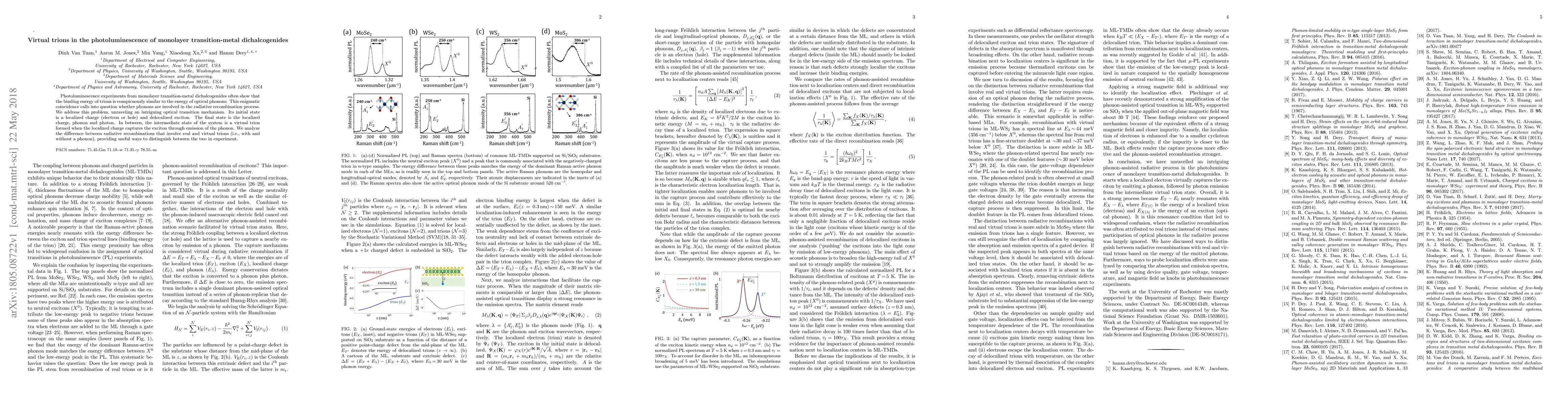 This paper investigates the photoluminescence of monolayer transition-metal dichalcogenides, revealing that virtual trions form during radiative recombination when a localized charge captures an exciton by emitting a phonon. It distinguishes between recombinations involving real and virtual trions, offering experimental methods to differentiate between them.