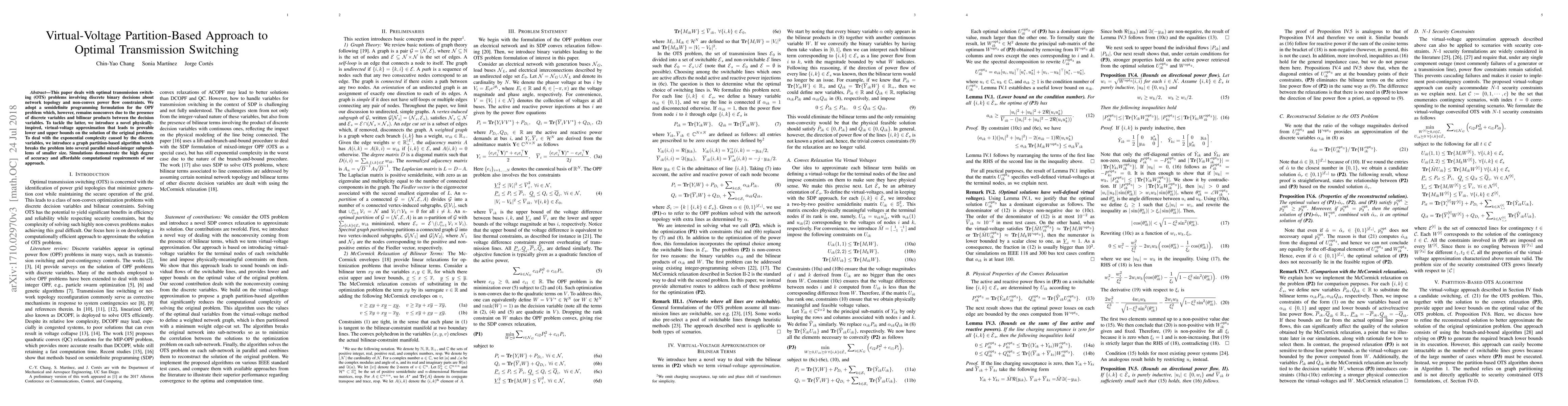 This paper deals with optimal transmission switching (OTS) problems involving discrete binary decisions about network topology and non-convex power flow constraints. We adopt a semidefinite programming formulation for the OPF problem which, however, remains nonconvex due to the presence of discrete variables and bilinear products between the decision variables. To tackle the latter, we introduce a novel physically-inspired, virtual-voltage approximation that leads to provable lower and upper bounds on the solution of the original problem. To deal with the exponential complexity caused by the discrete variables, we introduce a graph partition-based algorithm which breaks the problem into several parallel mixed-integer subproblems of smaller size. Simulations demonstrate the high degree of accuracy and affordable computational requirements of our approach.
