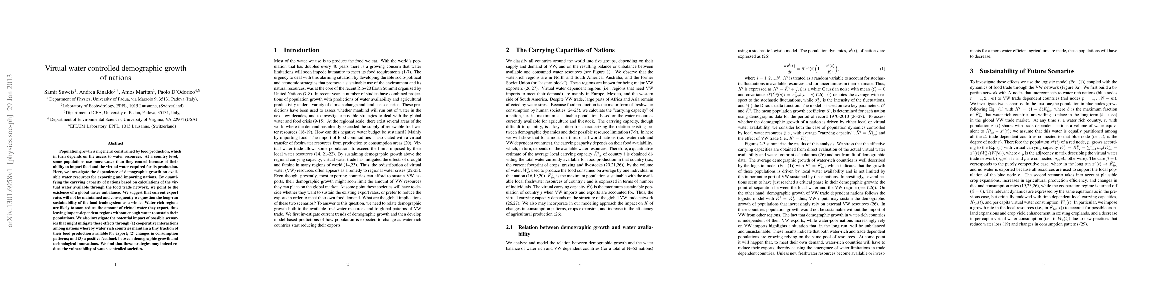 This research examines how virtual water, embedded in food imports, influences demographic growth in nations, highlighting a global water imbalance. It suggests that current export rates of virtual water cannot be sustained, threatening the long-term viability of the global food trade system, particularly for import-dependent regions. The study also explores mitigation strategies like cooperative water-sharing, consumption pattern changes, and technological innovations to lessen demographic vulnerabilities.