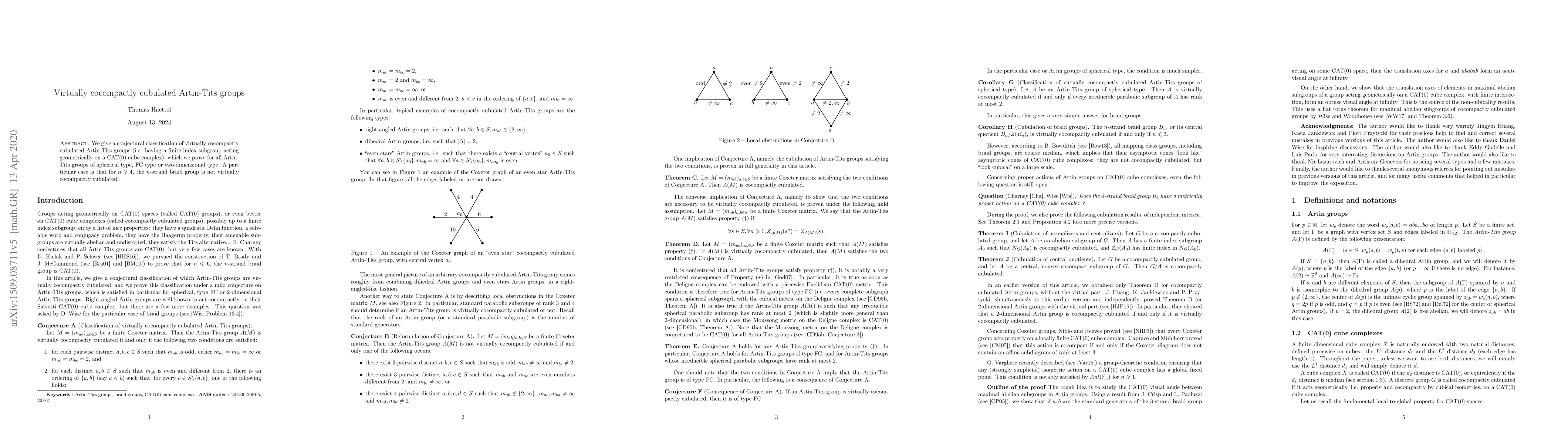 This research proposes a classification of virtually cocompactly cubulated Artin-Tits groups and proves the conjecture for groups of spherical, FC, or two-dimensional types. It concludes that for $n \geq 4$, $n$-strand braid groups are not virtually cocompactly cubulated.
