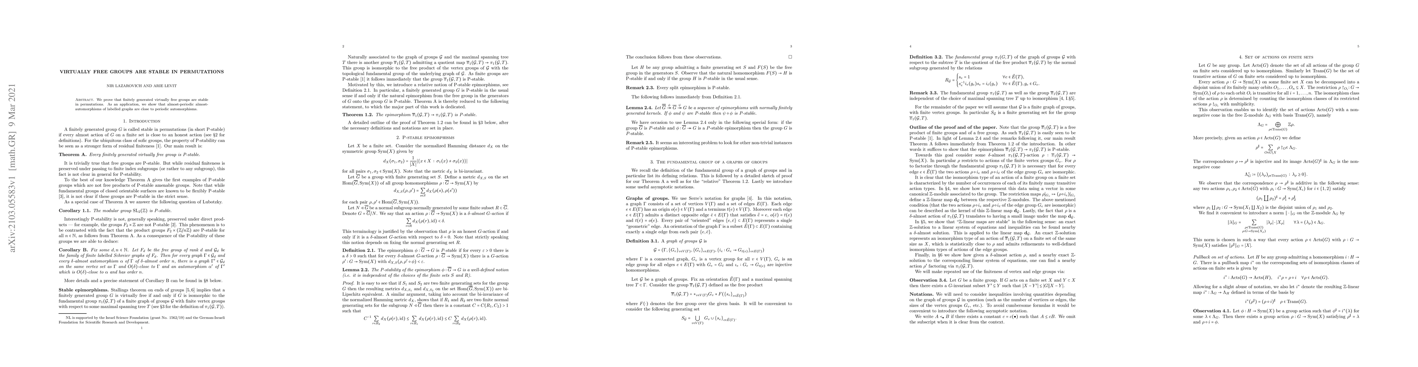 Summary: This paper demonstrates that finitely generated virtually free groups maintain their properties under permutation actions, and applies this result to show that almost-periodic graph automorphisms are nearly identical to periodic ones.