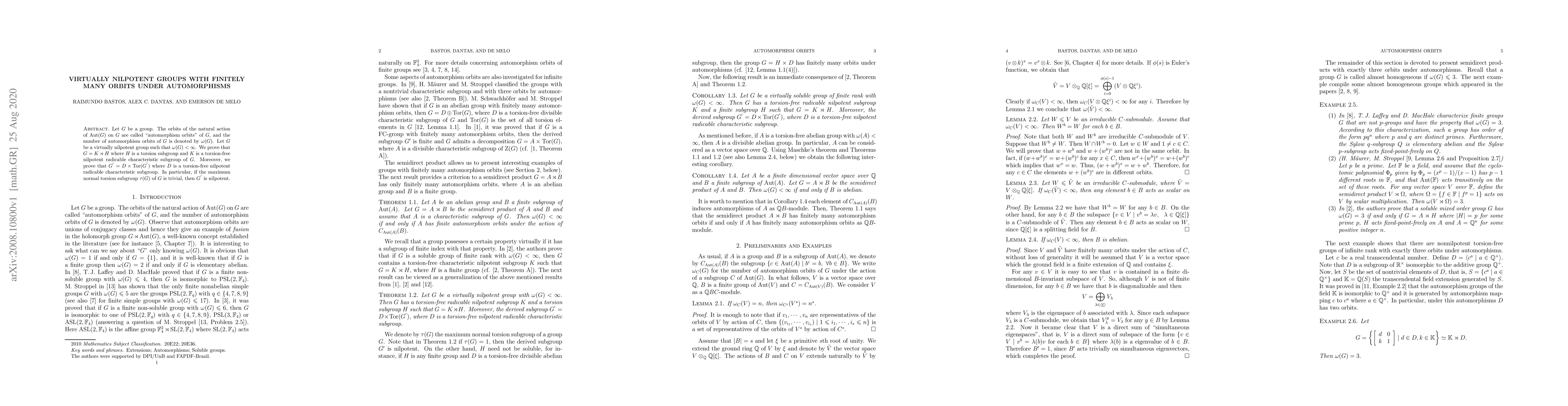 Let $G$ be a group. The orbits of the natural action of $\Aut(G)$ on $G$ are called "automorphism orbits" of $G$, and the number of automorphism orbits of $G$ is denoted by $\omega(G)$. Let $G$ be a virtually nilpotent group such that $\omega(G)< \infty$. We prove that $G = K \rtimes H$ where $H$ is a torsion subgroup and $K$ is a torsion-free nilpotent radicable characteristic subgroup of $G$. Moreover, we prove that $G^{'}= D \times \Tor(G^{'})$ where $D$ is a torsion-free nilpotent radicable characteristic subgroup. In particular, if the maximum normal torsion subgroup $\tau(G)$ of $G$ is trivial, then $G^{'}$ is nilpotent.