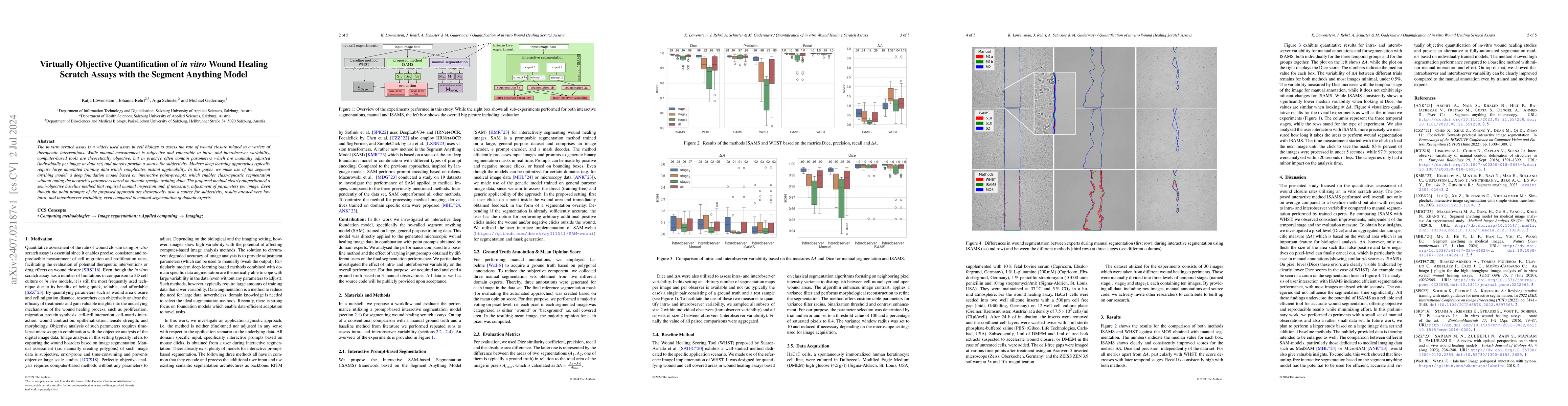 This paper introduces a virtually objective method for quantifying in vitro wound healing scratch assays using the Segment Anything model, achieving low intra- and interobserver variability. The approach outperforms traditional semi-objective methods requiring manual parameter adjustments.