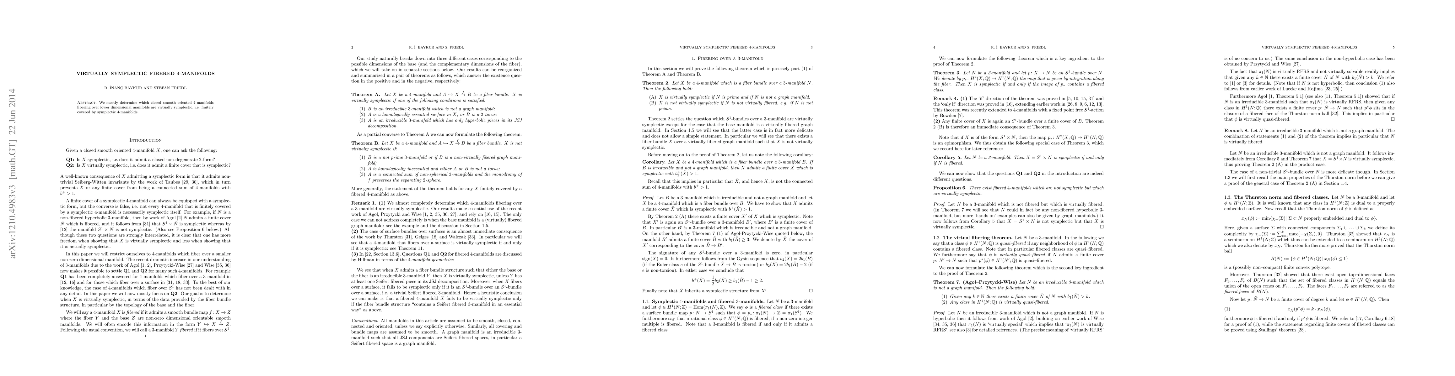 Summary: This paper identifies conditions under which closed smooth oriented 4-manifolds that fiber over lower-dimensional manifolds are virtually symplectic, meaning they can be obtained by finite covering from symplectic 4-manifolds. The results provide significant insights into the symplectic structure of such fibered 4-manifolds.