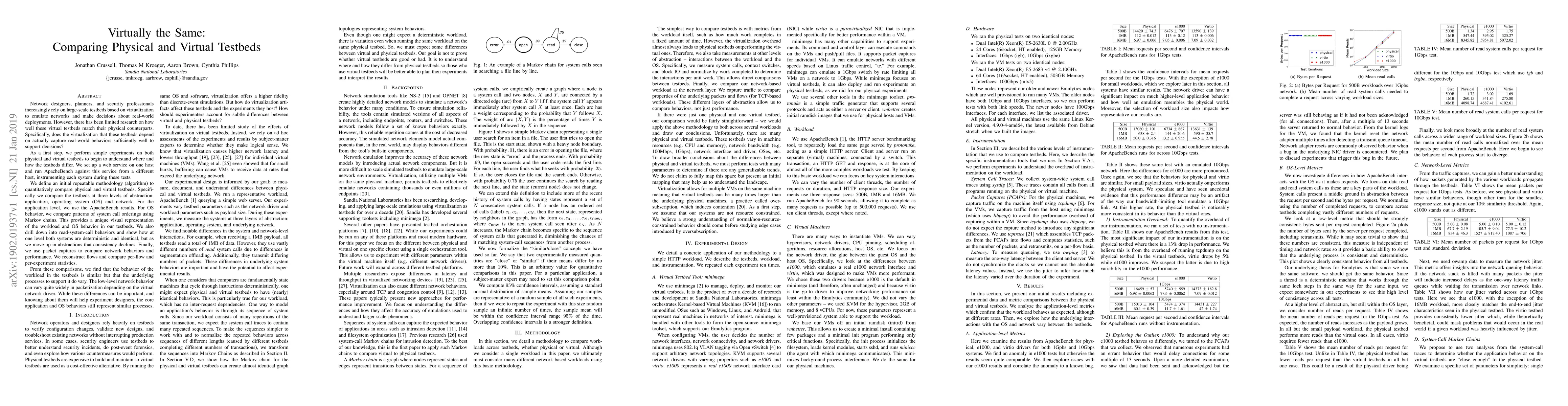 This paper compares physical and virtual testbeds to determine how well virtual environments emulate real-world network behaviors, finding that while application and OS behaviors are largely consistent, low-level network behaviors can vary significantly due to differences in virtual network drivers. The study employs ApacheBench, system call analysis, and packet captures to quantitatively assess the similarities and discrepancies across different levels of abstraction.
