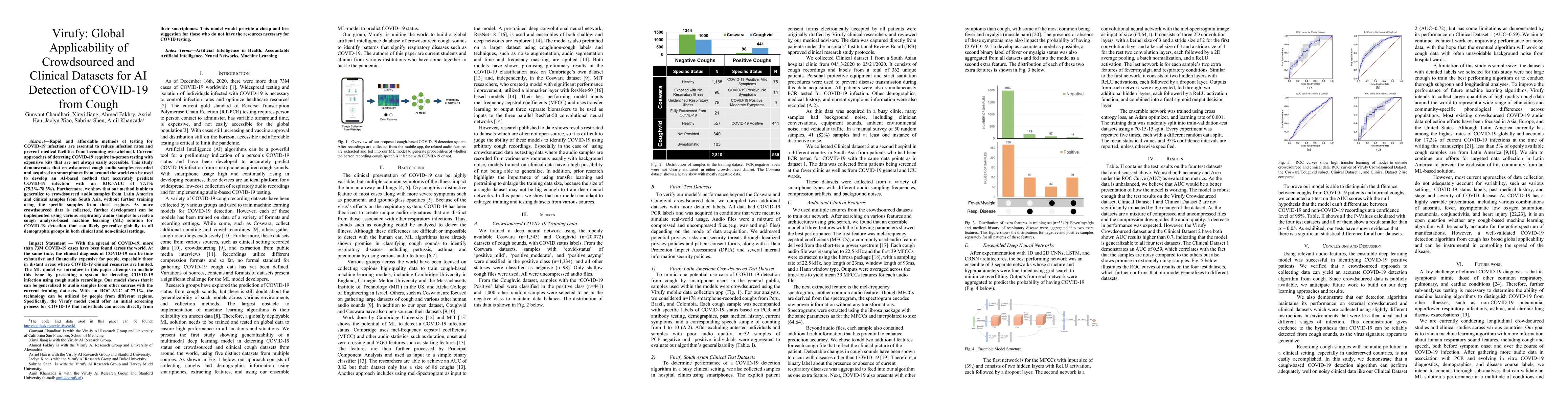 This study develops an AI-based method for COVID-19 detection using crowdsourced cough audio samples, achieving an ROC-AUC of 77.1%. The model demonstrates global applicability by generalizing to diverse datasets from Latin America and South Asia without additional training.