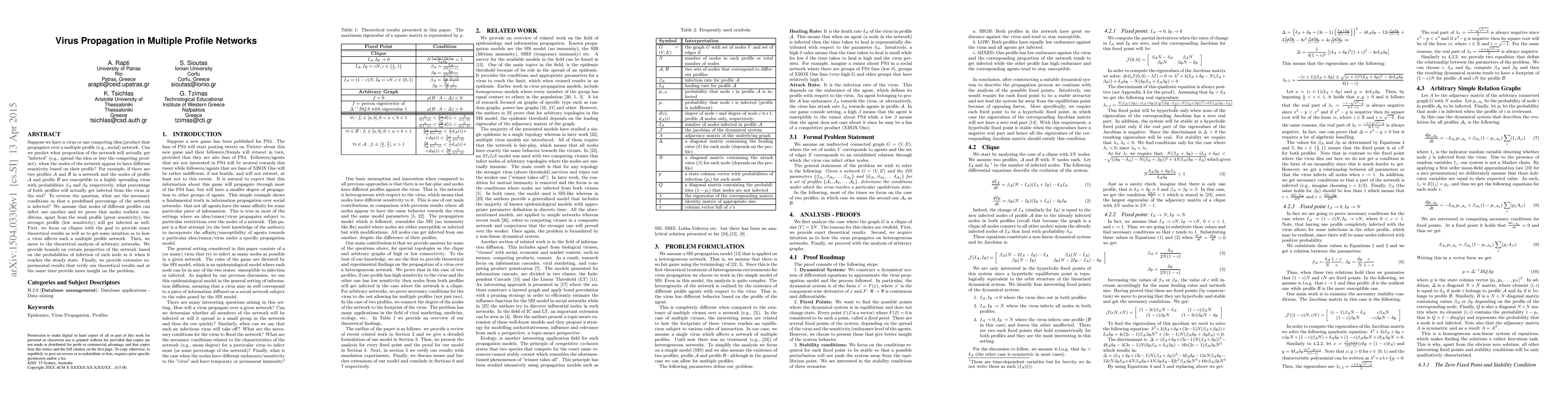 Suppose we have a virus or one competing idea/product that propagates over a multiple profile (e.g., social) network. Can we predict what proportion of the network will actually get "infected" (e.g., spread the idea or buy the competing product), when the nodes of the network appear to have different sensitivity based on their profile? For example, if there are two profiles $\mathcal{A}$ and $\mathcal{B}$ in a network and the nodes of profile $\mathcal{A}$ and profile $\mathcal{B}$ are susceptible to a highly spreading virus with probabilities $\beta_{\mathcal{A}}$ and $\beta_{\mathcal{B}}$ respectively, what percentage of both profiles will actually get infected from the virus at the end? To reverse the question, what are the necessary conditions so that a predefined percentage of the network is infected? We assume that nodes of different profiles can infect one another and we prove that under realistic conditions, apart from the weak profile (great sensitivity), the stronger profile (low sensitivity) will get infected as well. First, we focus on cliques with the goal to provide exact theoretical results as well as to get some intuition as to how a virus affects such a multiple profile network. Then, we move to the theoretical analysis of arbitrary networks. We provide bounds on certain properties of the network based on the probabilities of infection of each node in it when it reaches the steady state. Finally, we provide extensive experimental results that verify our theoretical results and at the same time provide more insight on the problem.