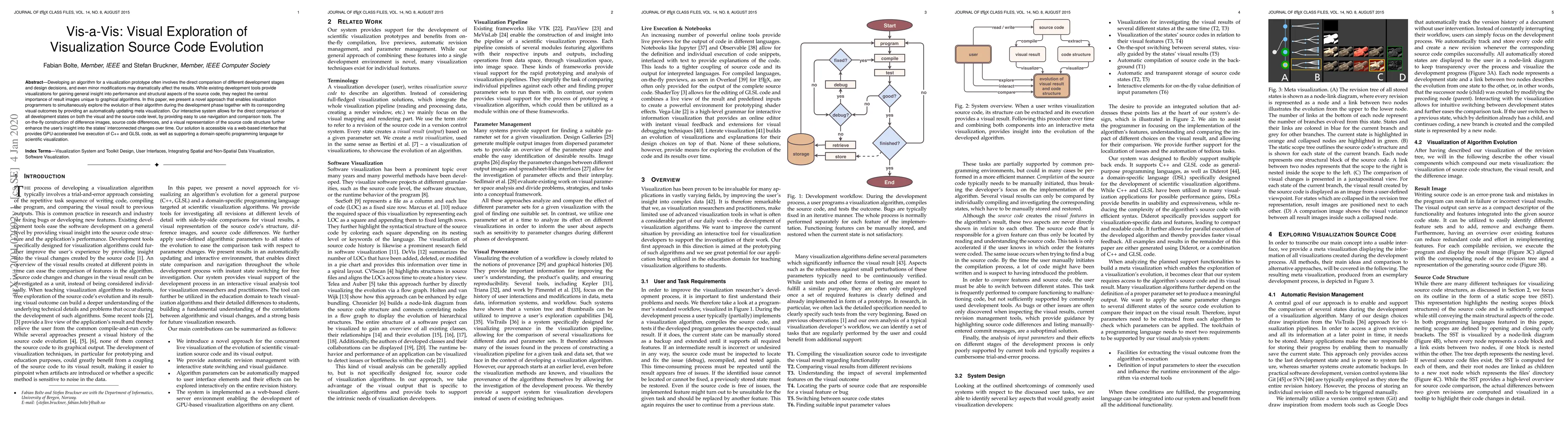 Developing an algorithm for a visualization prototype often involves the direct comparison of different development stages and design decisions, and even minor modifications may dramatically affect the results. While existing development tools provide visualizations for gaining general insight into performance and structural aspects of the source code, they neglect the central importance of result images unique to graphical algorithms. In this paper, we present a novel approach that enables visualization programmers to simultaneously explore the evolution of their algorithm during the development phase together with its corresponding visual outcomes by providing an automatically updating meta visualization. Our interactive system allows for the direct comparison of all development states on both the visual and the source code level, by providing easy to use navigation and comparison tools. The on-the-fly construction of difference images, source code differences, and a visual representation of the source code structure further enhance the user's insight into the states' interconnected changes over time. Our solution is accessible via a web-based interface that provides GPU-accelerated live execution of C++ and GLSL code, as well as supporting a domain-specific programming language for scientific visualization.