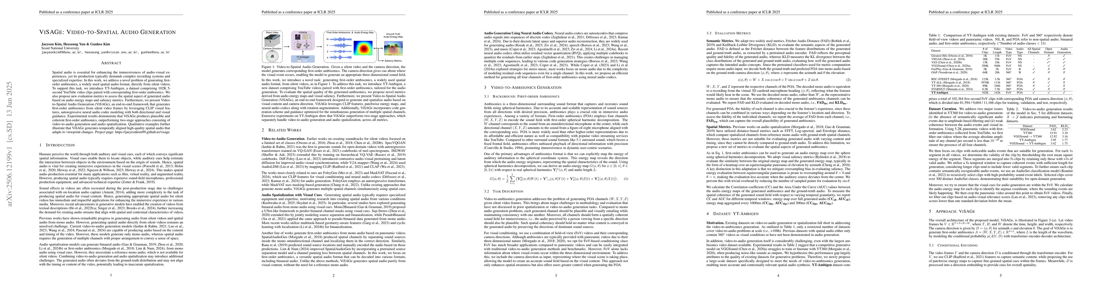 The paper introduces ViSAGe, an end-to-end framework for video-to-spatial audio generation, and YT-Ambigen, a large-scale dataset of video-ambisonics pairs. It also proposes novel evaluation metrics for assessing the spatial fidelity of generated audio.