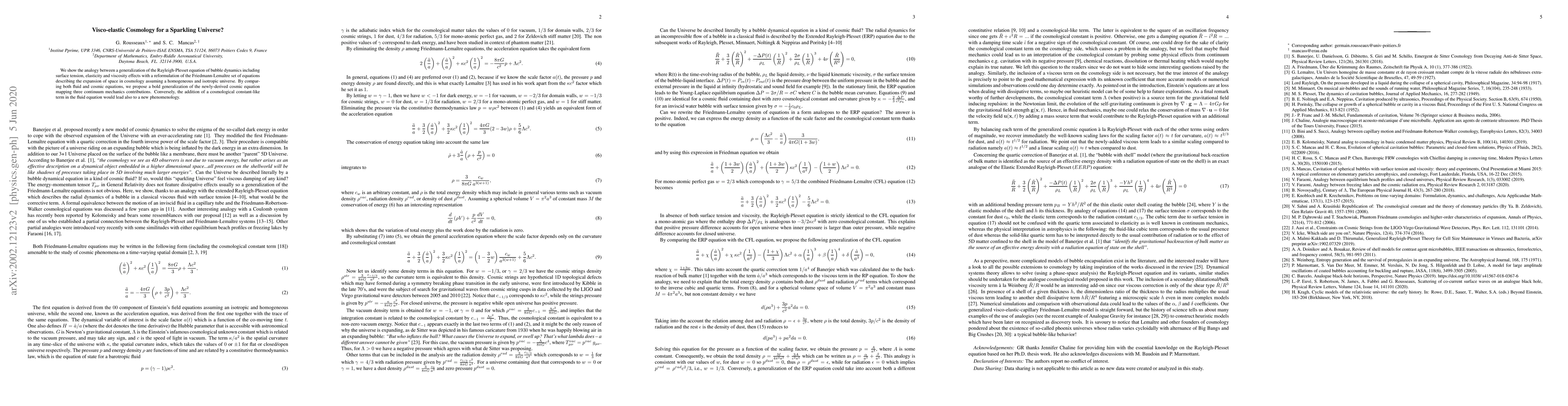 Researchers propose a new analogy between fluid dynamics and cosmology, suggesting that visco-elastic effects in the universe could lead to a sparkling universe with new phenomenology.