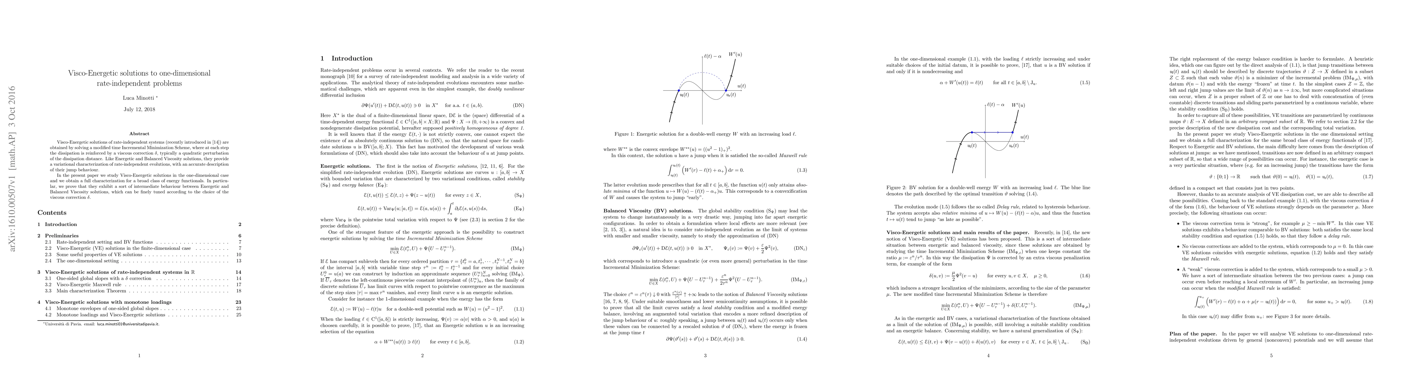 This paper investigates Visco-Energetic solutions for one-dimensional rate-independent systems, employing a modified time incremental minimization scheme with a viscous correction. It provides a full characterization of these solutions, showing they exhibit an intermediate behavior between Energetic and Balanced Viscosity solutions, tunable via the viscous correction.