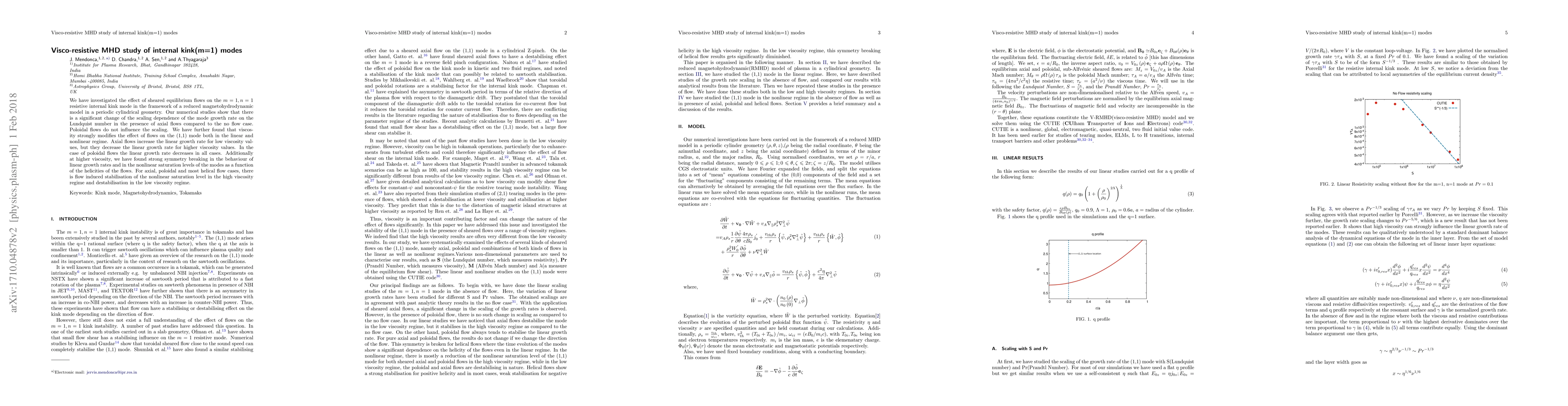 Researchers studied how sheared equilibrium flows affect internal kink modes in plasmas, finding that axial flows increase growth rates at low viscosity but decrease them at high viscosity, while poloidal flows have little effect.