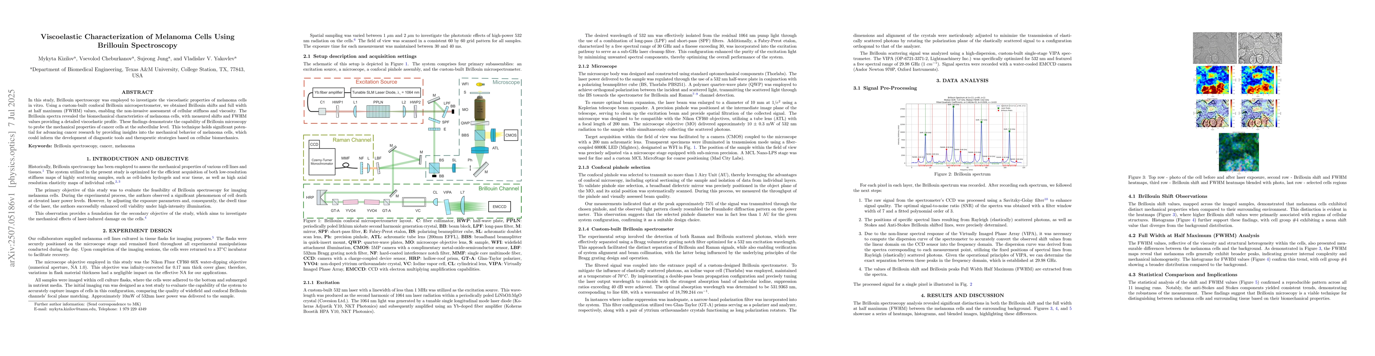 The development and implementation of a custom-built confocal Brillouin microspectrometer for non-invasive assessment of cellular stiffness and viscosity in melanoma cells.
