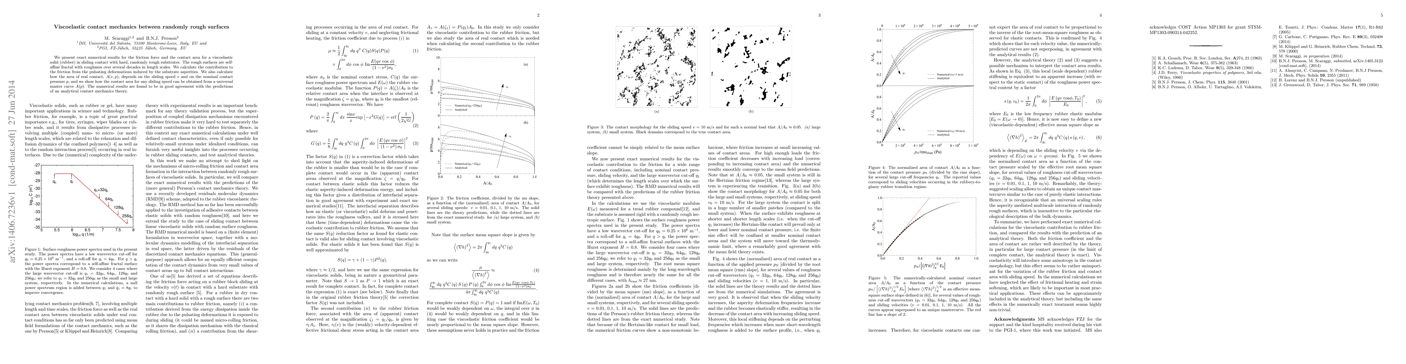 This paper investigates the friction force and contact area for viscoelastic rubber sliding against randomly rough, self-affine fractal substrates. It provides exact numerical results showing how the contact area depends on sliding speed and pressure, and demonstrates a universal master curve for contact area, corroborated by analytical theory.