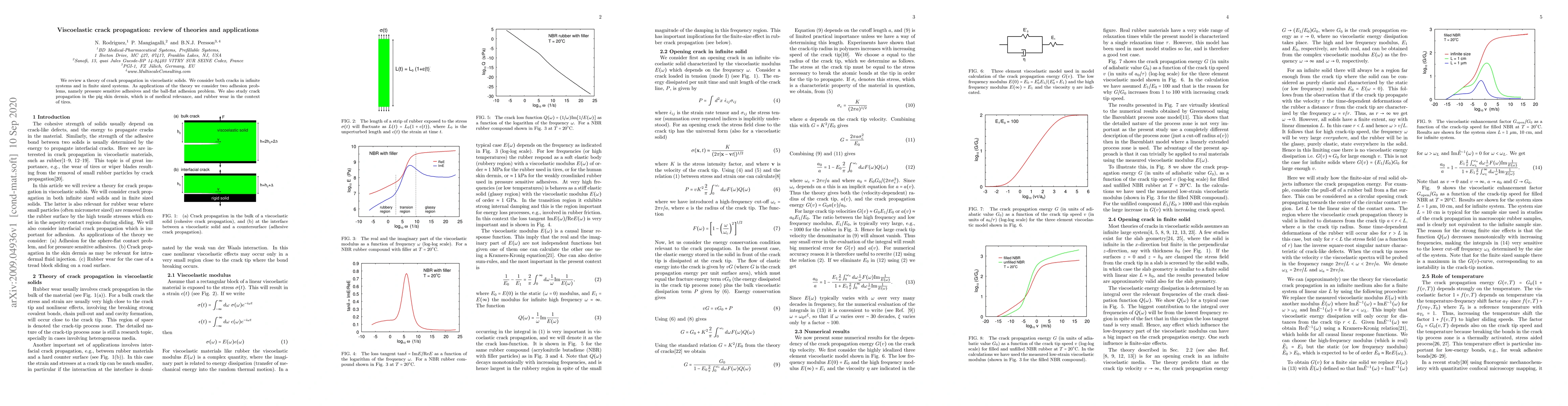 This paper reviews theoretical frameworks for viscoelastic crack propagation in both infinite and finite systems, applying these theories to adhesion problems in pressure-sensitive adhesives and medical relevance in pig skin dermis, alongside practical applications like rubber wear in tires.