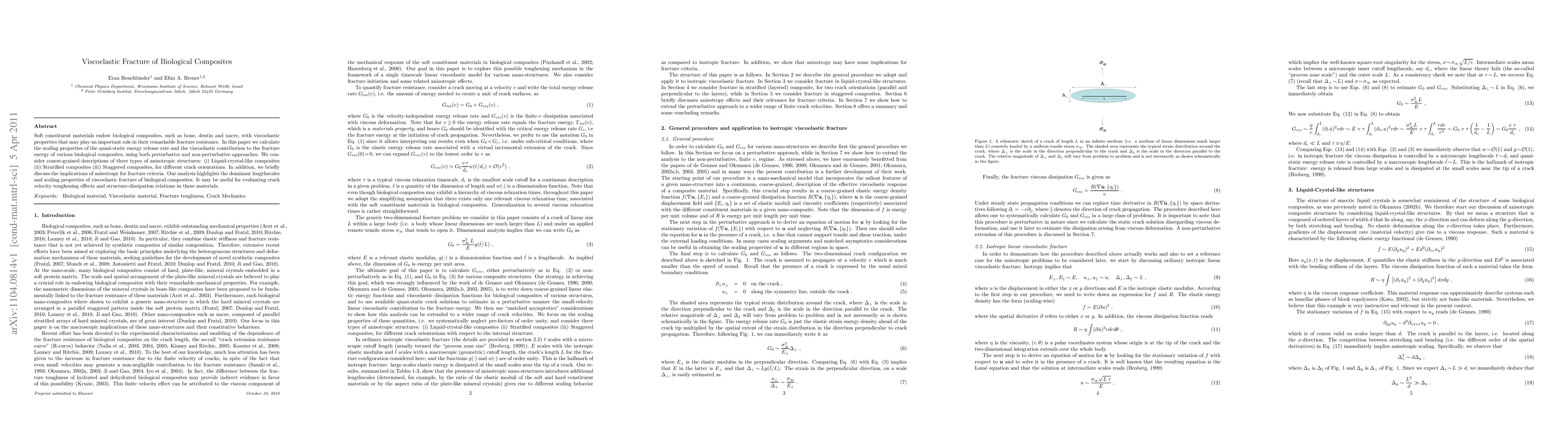 This paper investigates the viscoelastic fracture properties of biological composites like bone and nacre, calculating the energy release rate and fracture energy contributions using both perturbative and non-perturbative approaches. It analyzes anisotropic structures and discusses implications for fracture criteria, emphasizing dominant lengthscales and scaling properties.