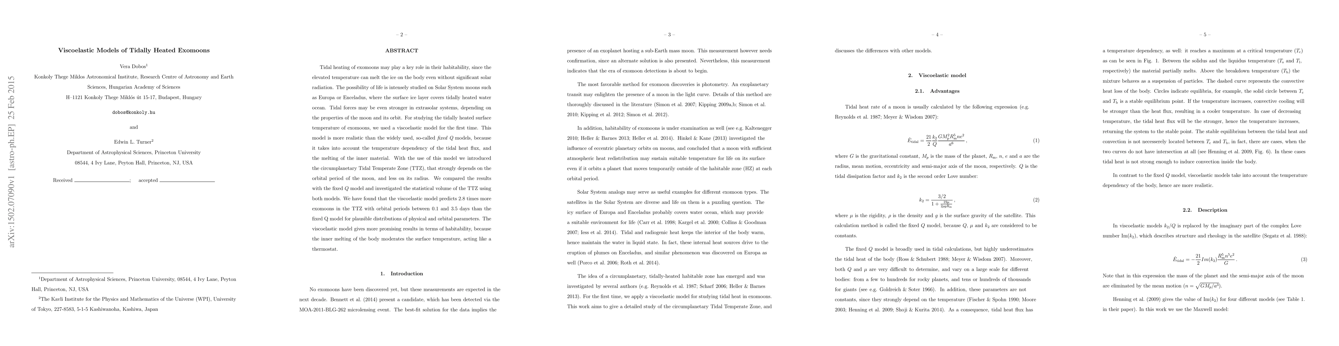 This paper introduces a viscoelastic model to study tidal heating in exomoons, finding that it predicts 2.8 times more moons in the Tidal Temperate Zone compared to the traditional fixed Q model. The viscoelastic model's temperature-dependent heat flux and inner material melting provide a more realistic assessment of habitability.