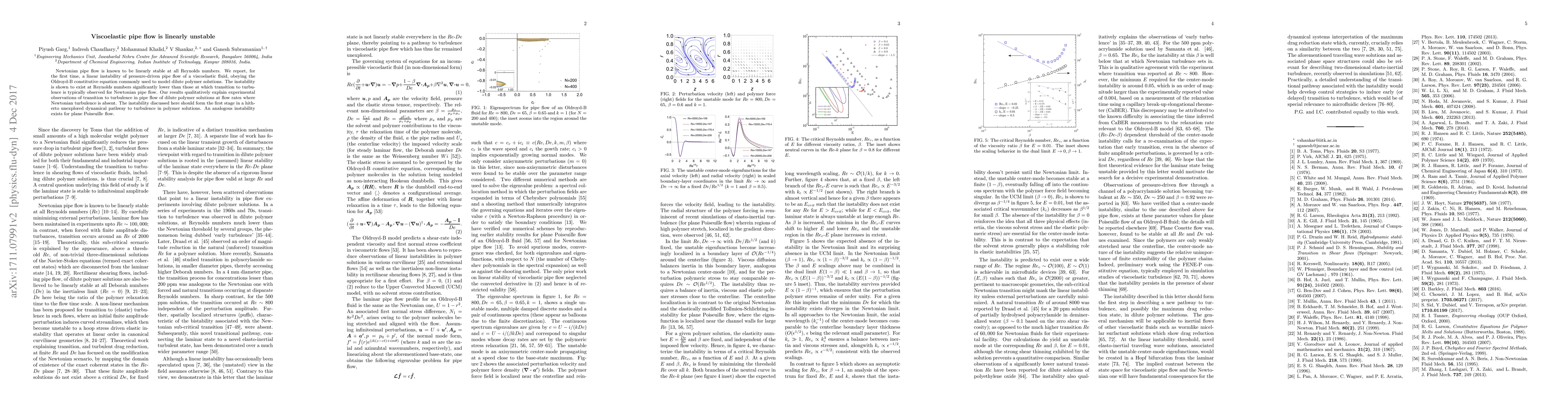 This paper reports a linear instability in viscoelastic fluid pipe flow, contrary to Newtonian pipe flow, which is typically stable. The instability occurs at lower Reynolds numbers than those for Newtonian turbulence, explaining experimental observations of turbulence in polymer solutions where Newtonian turbulence is absent.