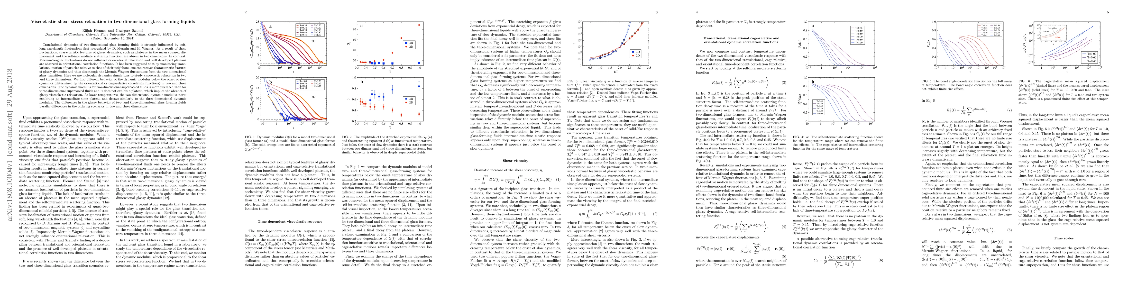 This paper investigates the viscoelastic shear stress relaxation in two-dimensional glass forming liquids using molecular dynamics simulations, finding that two-dimensional fluids lack glassy viscoelastic relaxation due to Mermin-Wagner fluctuations, contrasting with three-dimensional fluids where such relaxation is observed.