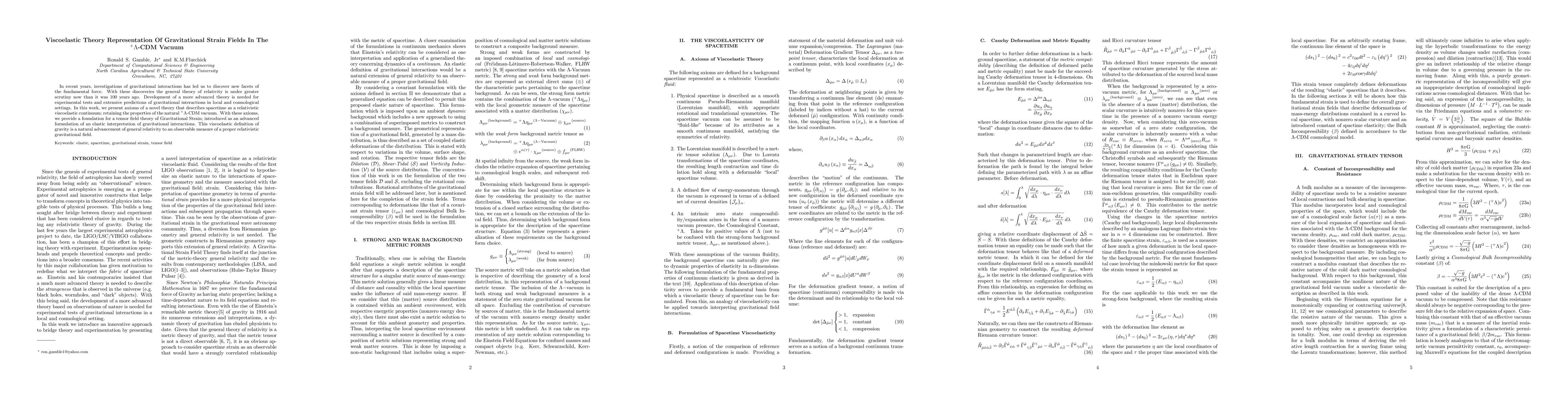 This research introduces a novel theory describing spacetime as a relativistic viscoelastic continuum, building on the ${}^{+}Lambda$-CDM vacuum model. It presents axioms for a tensor field theory of Gravitational Strain, offering an advanced elastic interpretation of gravitational interactions as a potential successor to general relativity.