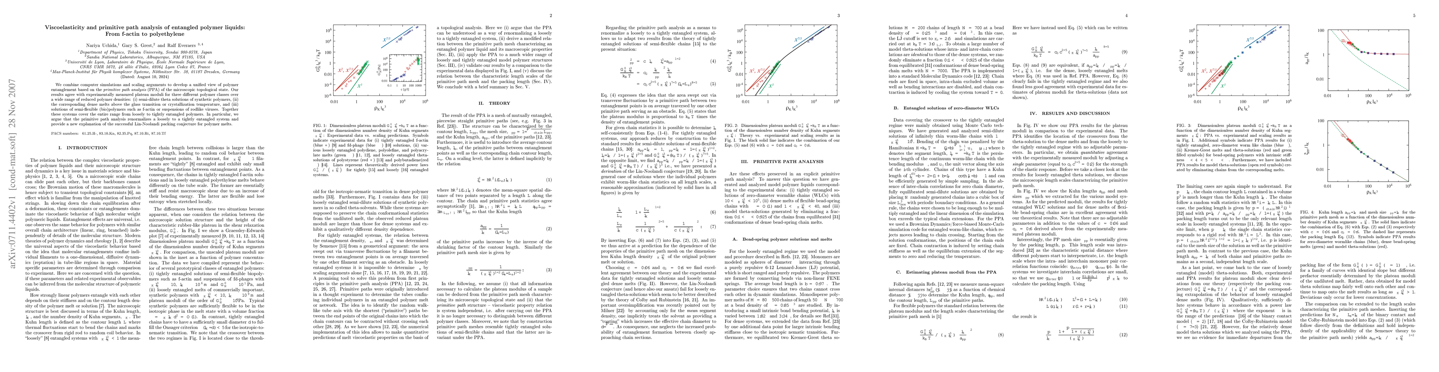 This paper uses computer simulations and scaling arguments to develop a unified view of polymer entanglement through primitive path analysis, showing agreement with experimental plateau moduli across various polymer types, from synthetic polymers to biopolymers like f-actin. The study proposes that primitive path analysis can renormalize entanglement levels and offers a new explanation for the Lin-Noolandi packing conjecture.
