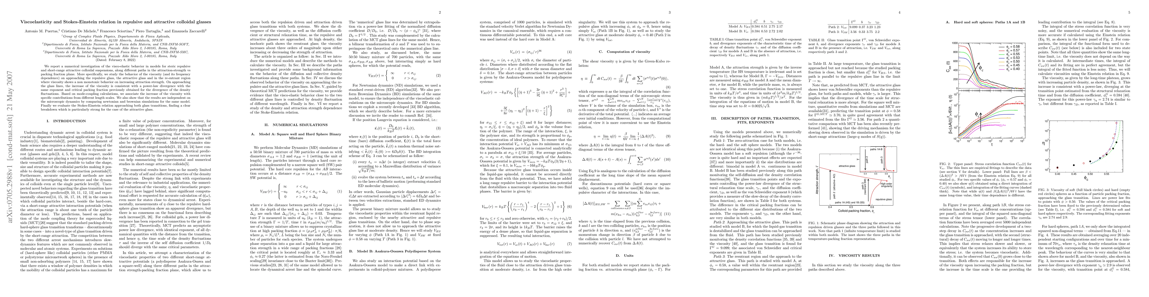 This paper investigates the viscoelastic behavior of colloidal suspensions with repulsive and attractive interactions, focusing on viscosity changes near repulsive and attractive glass transitions. The study reveals a power-law divergence in viscosity and a breakdown of the Stokes-Einstein relation, especially pronounced in attractive colloidal glasses.